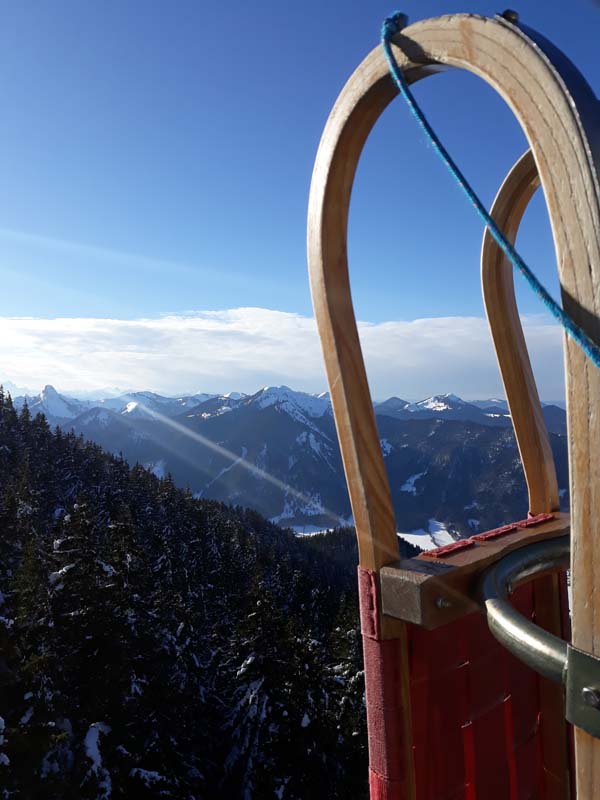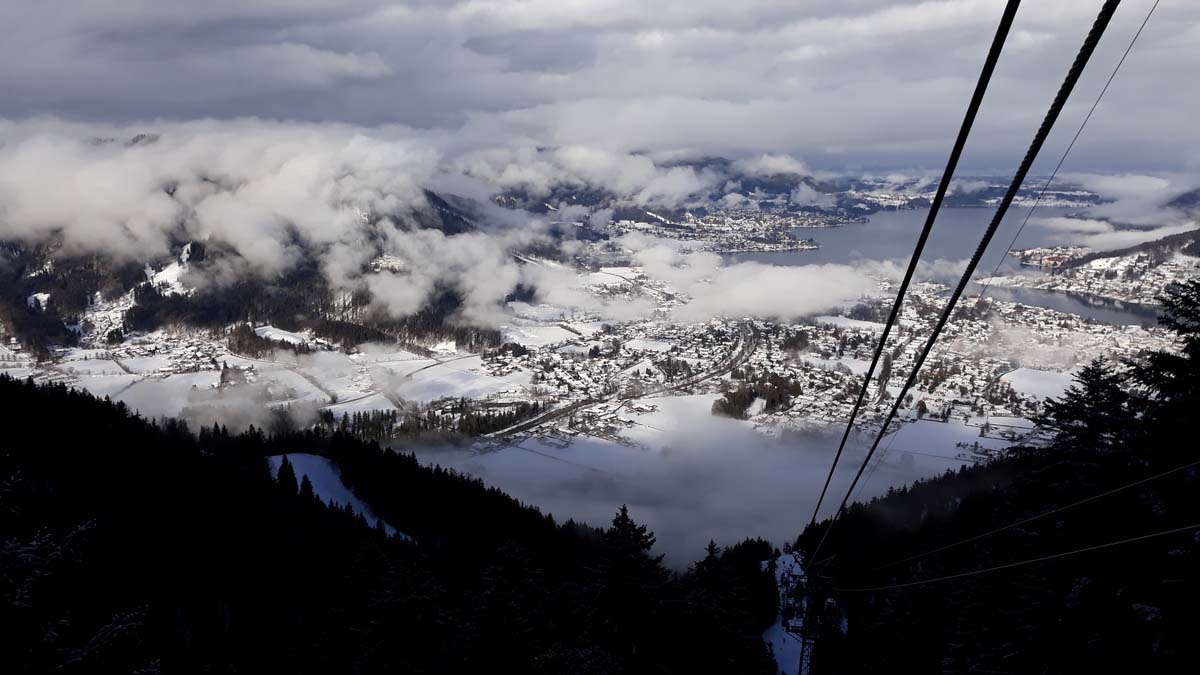 “Народе, можна не чекати заселення вперед на озеро!”, однодумців не виявилося, основний аргумент був, що речі треба було б занести в номер спочатку. Але ж там сонячна погода! Гаразд, побіг сам. Озеро наче на картинці, ніби дизайнери його спеціально розмістили саме таким ракурсом до готелю. Пішов у бік міста, сподіваючись розібратися з дирижаблем, але той уже літав у повітрі. Трохи нагодував свій погляд озерними краєвидами та готелями, які виглядали як резиденції мільярдерів. На гугл карті висвітилося місце з дивною назвою Wallbergbahn, оцінкою 4,4 та 690 відгуків. Без інтернету деталі про місце та відгуки прочитати не виходило. Але мені явно туди треба. Іти близько трьох кілометрів. Ще й закриється за кілька годин. Покрутив карту детальніше та визначив, що це канатка. Супер! Тепер буде ідеальна видимість, щоб побачити гори. Спробував зловити інтернет, щоб попередити наших у чаті про наявність підйомника, але інету не було. Три кілометри я пройшов спортивною ходьбою, щоб напевно встигнути. З боку я виглядав як спринтер, що заблукав в горах. Причому трохи кульгавий спринтер. Підйомник працював, людей практично не було. Поки стояв у черзі з однієї людини, то помітив правила гальмування на санчатах. Невже тут можна на санчатах поганяти? Як будуть санки англійською я не знав. А жінка, яка продає квитки, не могла зрозуміти, що йдеться про санки. Я їх описав як лижі, але не зовсім, мають ту саму суть і на цій горі. Мимо! Друга спроба — показала її правила катання на санчатах. З’ясував, що платиш 5 євро, даєш у заставу паспорт і до 17:00 катайся на санках, скільки влізе. Один підйом коштує 11 євро, що більше береш підйомів за раз, то менше платиш за один. До речі, спуск без санок коштує теж 11 євро, тож дешевше на санчатах спуститися.
