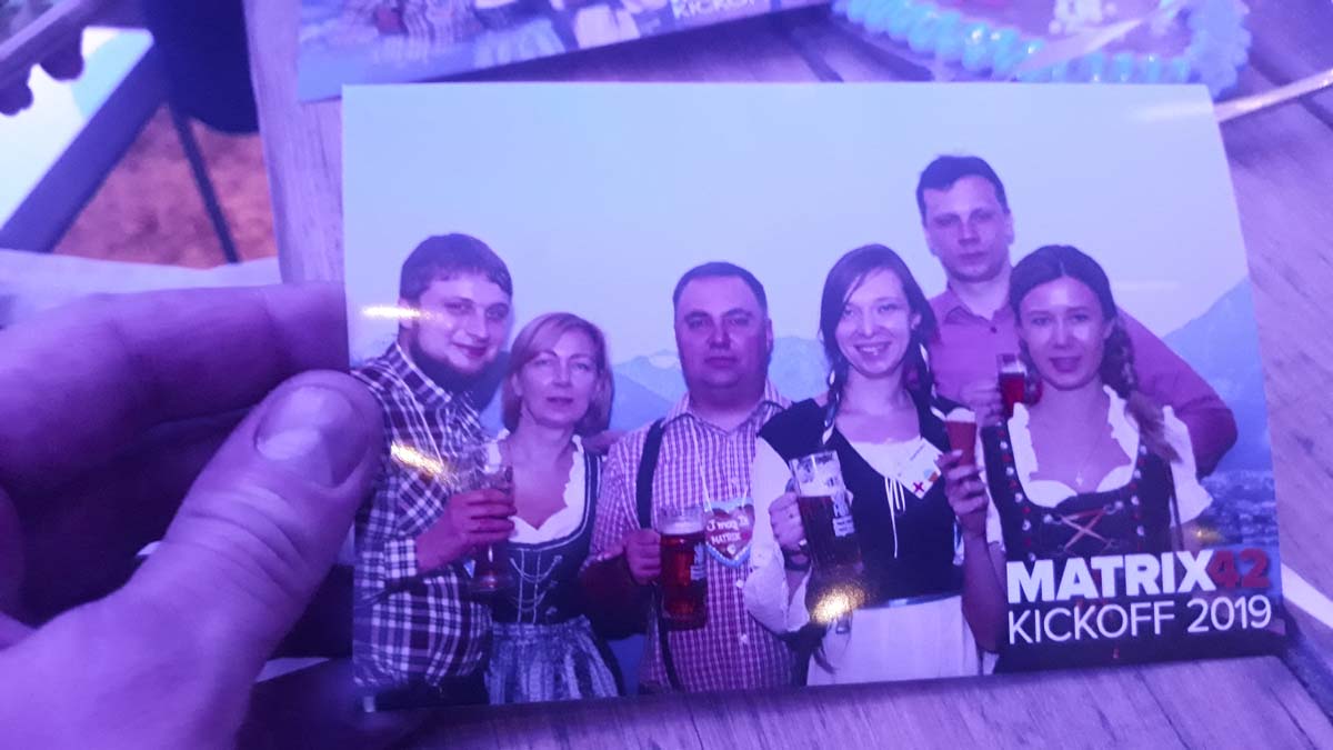 Атмосфера панувала надзвичайно святкова. Найсмачніше німецьке пиво тут йшло тоннами тонн. Тим паче воно безлімітне. На барі були різні коктейлі, але вони попитом явно програвали пиву. Час летів зі страшною швидкістю. Одна співачка запалювала натовп так, що хороводи, народні німецькі танці та масовий спів запам’яталися ще надовго. Ми всі тримали один одного під руки та танцювали синхронний німецький танець. Я, до речі, у номінаціях року був висунутий на номінацію “Sunshine!”, але голосами переміг хтось із Німеччини. Але мені дуже приємно, що саме до цієї номінації я потрапив за голосуванням всього Матрікса. Коли час наближався до другої ночі я себе силою змусив піти і лягти спати інакше плакали мої саночки.