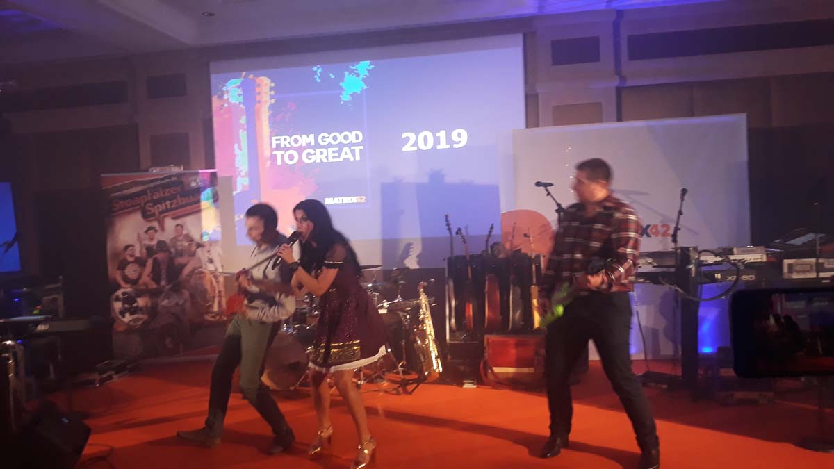 Для того, щоб покататися треба встати максимально рано. Після торішнього гуляння в деяких не вдалося стати навіть максимально пізно. Так, що ще на початку гулянки я поставив будильник на 7:45. Як ми з Дашею любимо говорити в поїздках “Нічого, відпочинемо якось у Єгипті” Коли ми раз на два роки летимо до Єгипту, це йде саме як відпочинок за всі поїздки. Я підбивав народ теж вирушити вранці зі мною, були готові на такий ранній подвиг досить багато, але тут ще треба справою довести бажання. А тим часом вечірка набирала обертів. Після нагородження співробітників у різних номінаціях розпочалися запальні танці. Виступало кілька німецьких гуртів.