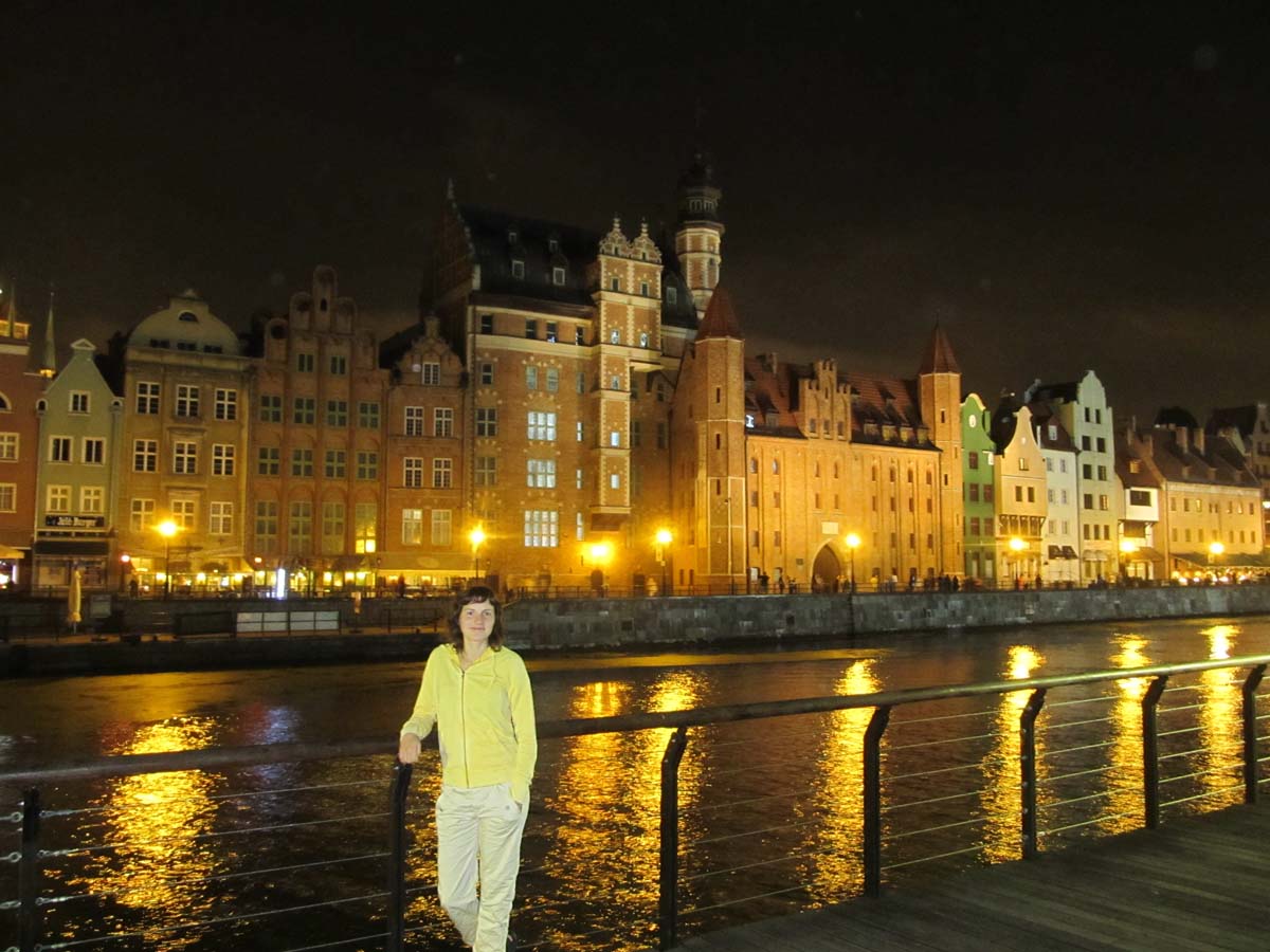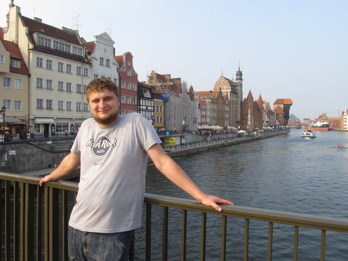Вже ввечері ми приїхали до центру Гданська. Зручно, коли біля старого міста зупинка поїзда. Це був останній вечір у Гданську, треба було насолодитися по максимуму. Нічний центр виглядає дуже романтично. Єдиний момент засмучував – через 12 годин треба бути у Києві на роботі. У зв’язку з цим довго не нагуляєш центром. Здавалося, ніби наші пригоди позаду, але щось підозріло довго не приїжджає наш єдиний трамвай, що йде на околицю. Всупереч розкладу. Хвилин за 30 стало зрозуміло, щось пішло не за планом. Поглядом тестувальника на електронне табло знайшов ознаки, якими було видно, що частина присутніх трамваїв явно не приїде сьогодні, їх рядки трохи відрізнялися від тих, що не відставали від графіка. Потім ще й рядок, що біжить, підозрілий. Уточнили у поляка, що там написано. Виявився обрив на лінії. Треба їхати іншим номером, потім пересісти на автобус. Поляку, на щастя, було з нами по дорозі. Інший номер завіз до якоїсь індустріальної зони і висадив усіх біля автобуса. Напівсплячий водій автобуса сказав, що нікуди він не поїде, йдіть на іншу зупинку. До іншої зупинки ми йшли 15 хвилин у швидкому темпі. На тому місці зупинки не було. Але збиралися люди і на щось чекали. Наша дорога до готелю вже розміняла другу годину часу. Ні автобуси, ні таксі не хотіли зупинятися. Хвилин за 30 під’їхав автобус і повіз усіх у бік потрібного району. Але й він не доїхав до самого району, висадивши серед нічних вулиць. Найцікавіше, що частина натовпу чекала на той автобус хвилин сорок, щоб на ньому проїхати всього кілька кілометрів. Поляк із нами розпрощався, наш маршрут підхопив планшет, заряд якого зовсім не розраховував на нічні пригоди. До готелю ми йшли ще 20 хвилин. Незважаючи на глибоку ніч, ми відшукали нічний магазин і традиційно накупили собі європейських сирів. Спочатку план був виспатися і о четвертій ранку на таксі бадьоро поїхати в аеропорт. У результаті висипатися вийшло і в готелі, і таксі, і в літаку, і в зоні очікування. Добре хоч таксист по нас приїхав вчасно. У літаку нам дісталося три місця, що додало комфорту дорозі назад. Коли я прокинувся, за ілюмінатором було видно мій офіс. Шкода нікому так рано було помахати з літака.
