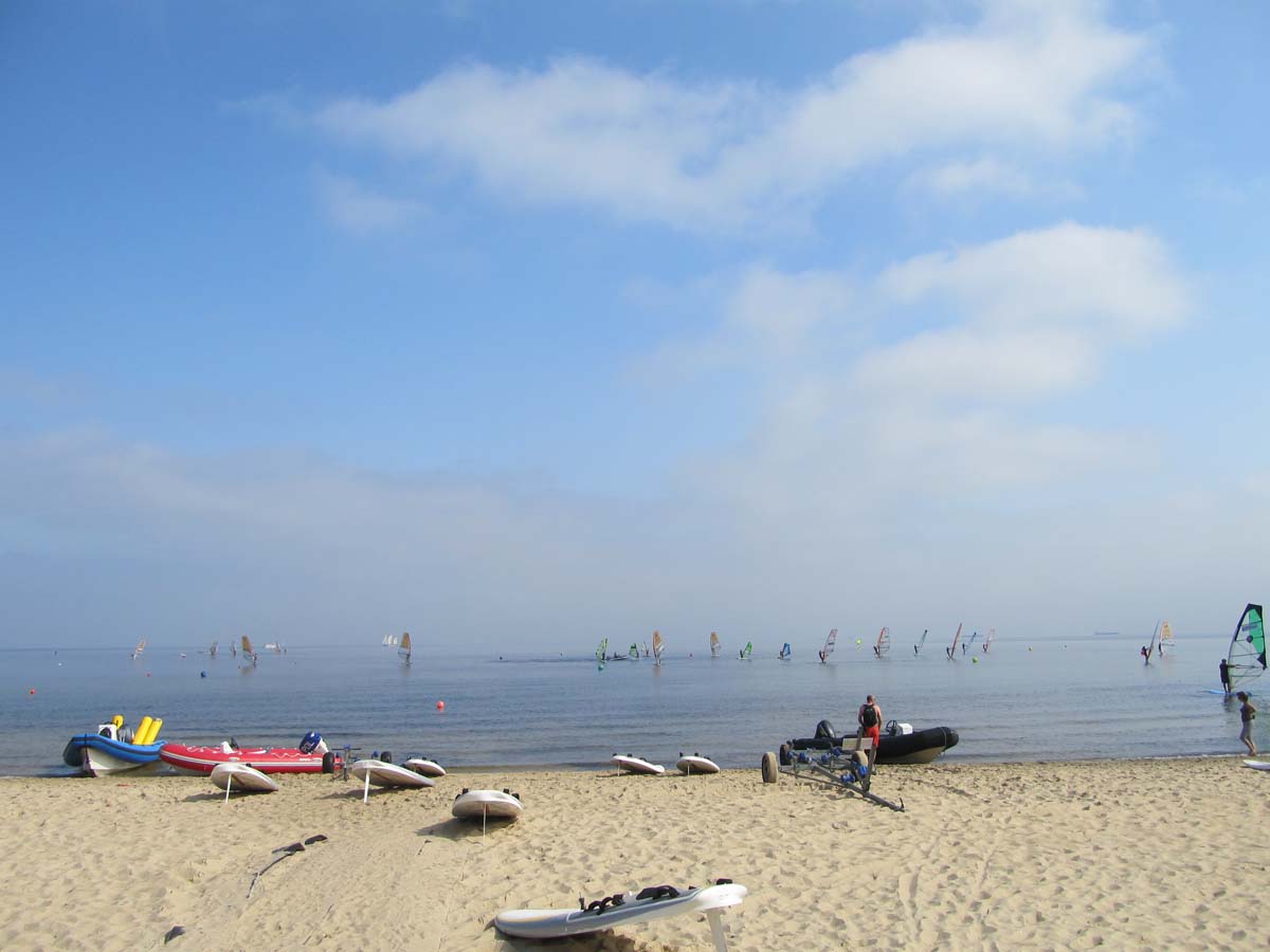 На другий день ми вирішили розвідати, що там у двох сусідніх містах. Міста розташовані на відстані 17,5 км від Гданська по береговій лінії. До речі, настав час познайомитися з морем. Під час вчорашніх гулянь центром, до моря так і не вдалося дістатися. Ранок був похмуро-туманним настільки, що море за кольором практично зливалося з небом.