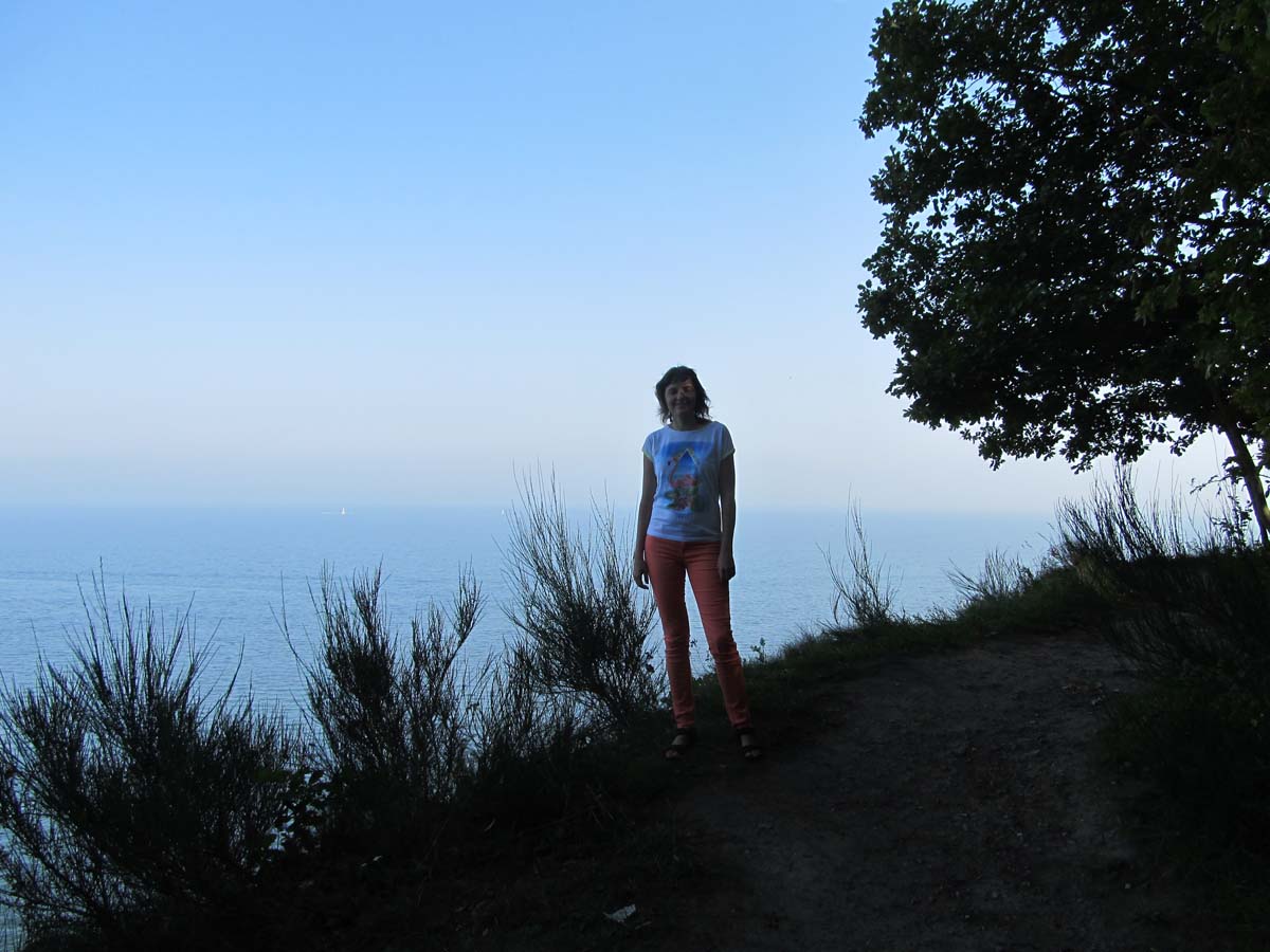 З одного боку, пляж, з іншого гора та ліс. Велосипеди на паркування, а самі в піший маршрут лісом. Ми думали спочатку заїхати туди на велосипедах, але було не до кінця зрозуміло, чи можна цими маршрутами їздити на велосипеді. Ліс був великий та темний.