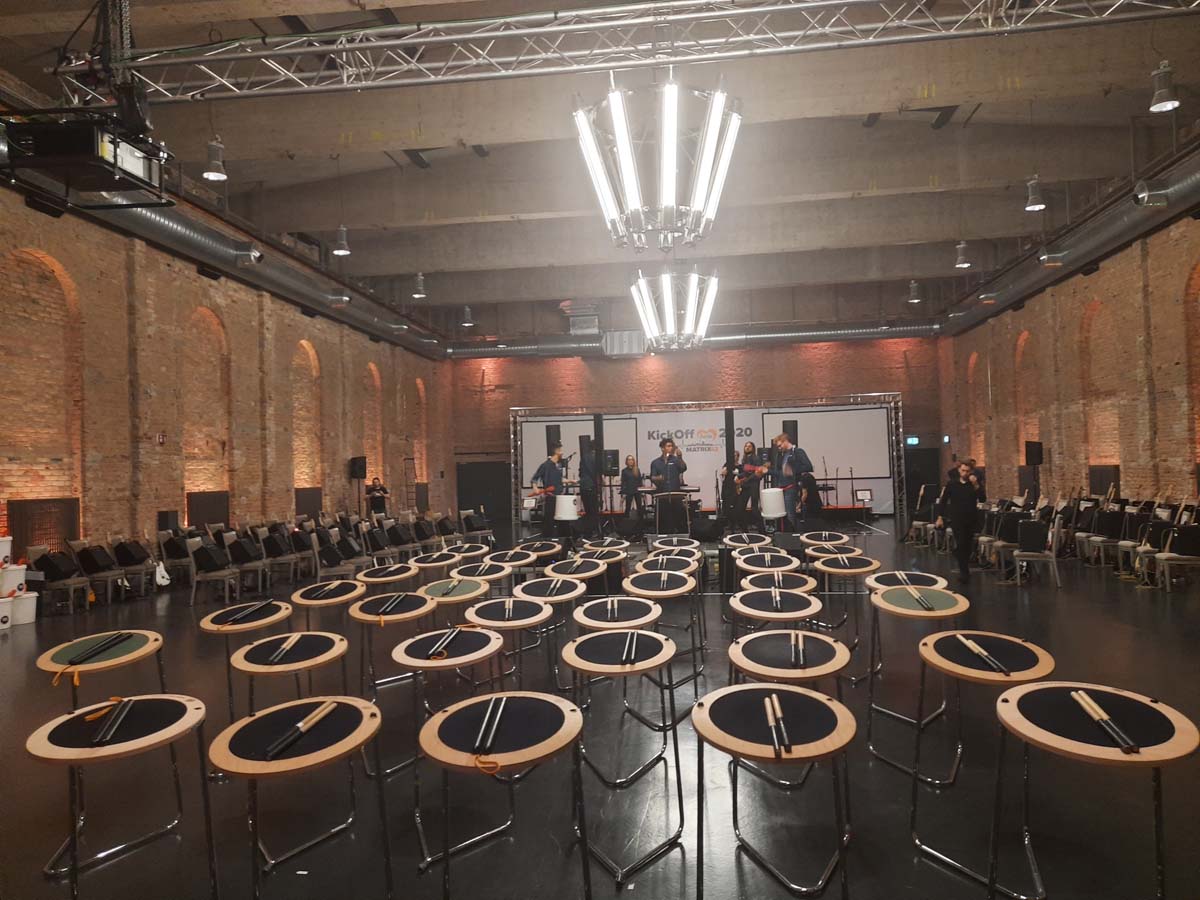 На вході кожен співробітник тягнув картку, на якій було намальовано інструмент, який потрібно освоїти для виступу. Невже ми зараз гратимемо замість слухання доповідей? Ось воно, недаремно пройшла моя музична молодість! Не дарма були всі ті гастролі! Зараз я навіть освою свій перший інструмент! Що тут у нас? На картці намальовані барабани. О Дааа! Нас поділили на групи: барабани, бас-гітари, електрогітари, ще один вид барабанів та солісти. Кожна група вирушила зі своїм репетитором освоювати інструмент. Ми розучували правила гри трьох різних пісень. Потім оркестр, який складається зі співробітників, у розмірі 150 осіб, влаштовував справжній концерт. Атмосфера була невимовна. Мені завжди було цікаво, що відчуває музикант під час виступу.