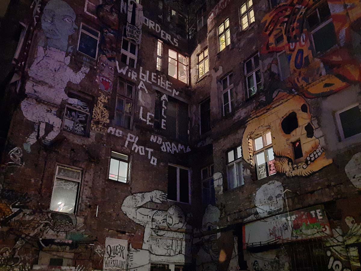 Цього разу ми охопили берлінську стіну та прилеглі до неї райони. Скажу так, після китайської стіни, берлінська виглядає суттєво простіше. Зате в околицях знайшли дворик, у якому великий розмальований будинок і багато незвичайних інсталяцій, це начеб то колишній сквот, хоча може й не колишній, я так і не з’ясував.