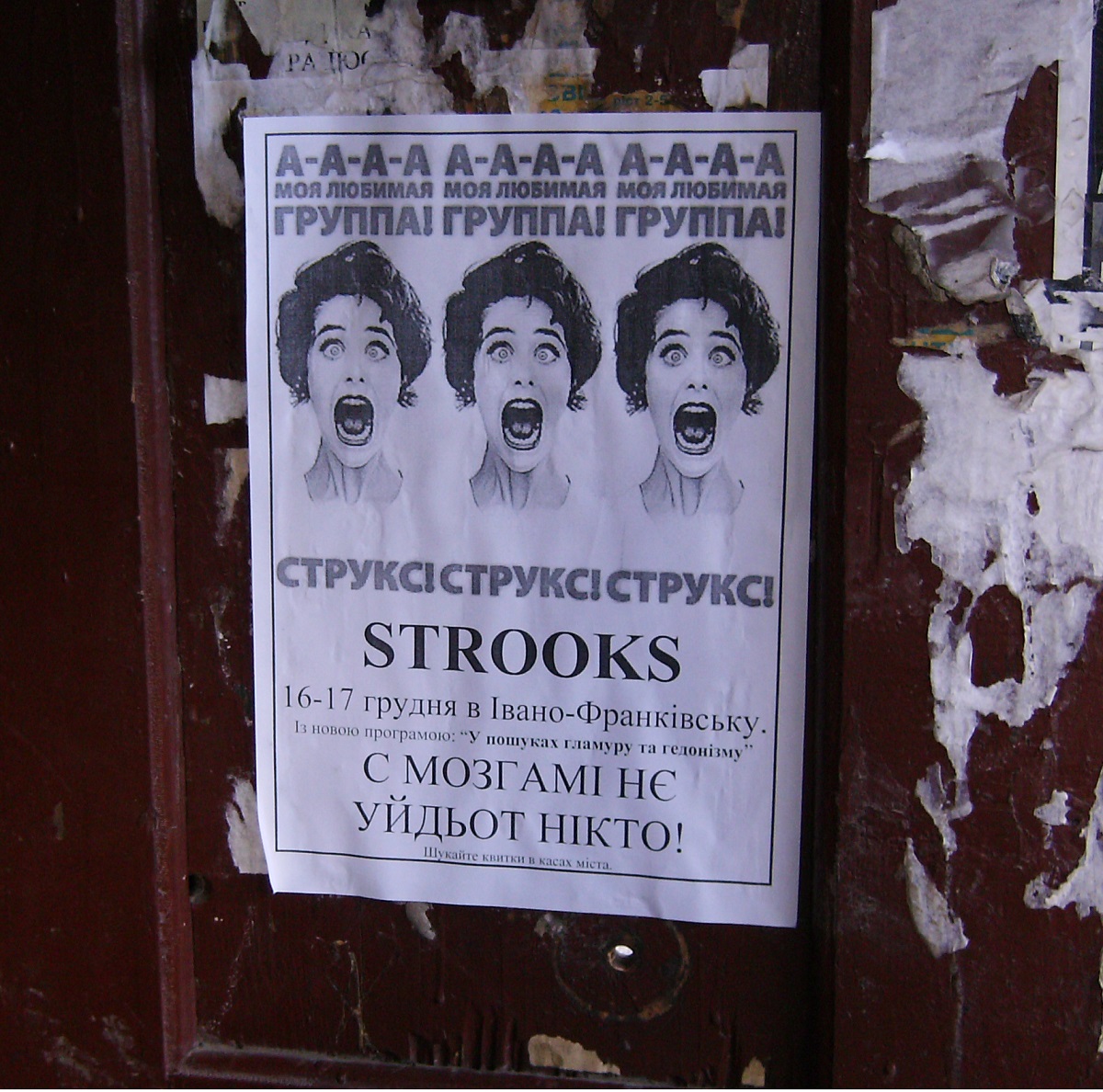 Тепер трохи про наше музичне минуле. У далеких 2010-х роках ми перебували у знаменитому музичному гурті Strooks. Ми гастролювали Україною та ближніми країнами СНД. До складу групи входило понад сотні людей. Щороку традиційно у нас були гастролі у весняну Ялту. А протягом року до обласних центрів інших міст. Фішка нашого гурту була в тому, що у нас не було жодної пісні. Ми приїжджали до інших міст, там вішалися плакати, реклама нашого туру із закликом купити квитки на наш концерт. Але ніколи не було вказано, де саме купувати квитки та де саме пройде легендарний концерт. Максимум було вказано місце проведення. Група розвивалася, і ми навіть випустили свій перший диск, який називався “9 вампірят”. Диск мав красиву обкладинку, а на самому диску відповідно не було записано жодної пісні. Це дуже важливо, бо на наших концертах немає пісень. Група існувала і розросталася протягом 7 років. Одного разу навіть був примусовий ребрендинг. Річ у тому, що в одного з наших солістів порвався в руках плакат із назвою гурту та відпали дві літери “S”. У результаті група була перейменована на trook. Ех були часи! То був наш перший музичний досвід.