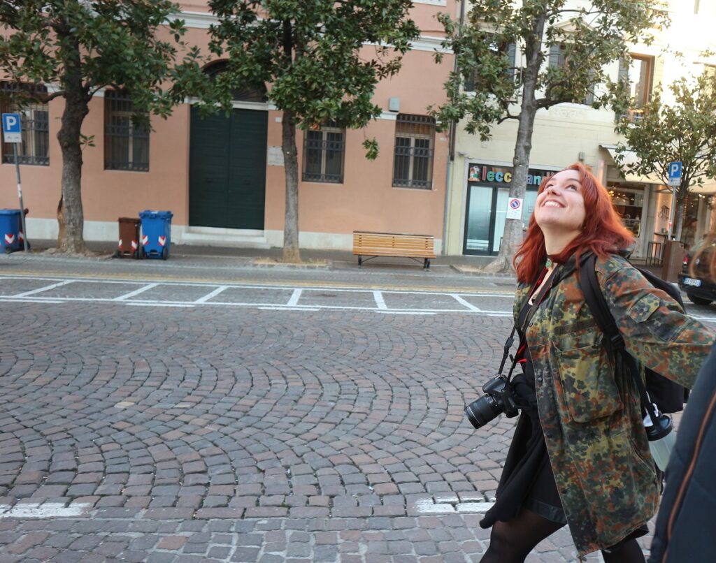 Вже традиційно подорож Італією ми починаємо із кави та круасана. Цей початок був вдвічі яскравішим ніж минулі, адже це було перше знайомство Ані з Італією і вона випромінювала стільки позитивної енергії, що мені навіть не довелось просити, щоб каву робили гарячішою ніж зазвичай. Продавчиня у кафе запитала звідки ми, і певно дуже здивувалася за останній рік побачити настільки щасливих українців. Жінка нам у подарунок налила чайничок чаю і побажала гарного дня. Тож подорож одразу почалася з позитивних ноток. Далі ми гуляли затишними сплячими вуличками ранкового Тревізо. Містечко доволі маленьке, охайне і за рахунок цього дуже затишне. Ми провели тут приблизно годинку і після цього на три хвилини запізнились на потяг, тож поїхали в Местре на автобусі. Ми були у цих краях п’ять років тому і Местре бачили переважно вночі. Не найприємніше і не найбезпечніше місце у світі, але зранку виявляється доволі милим містечком, тож пішки через центр було пройти в самий раз і можна їхати до цілі.