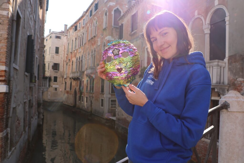Ця подорож була подарунком Даші на День народження – відвідати Венеціанський карнавал! Я у волонтаріаті кожен раз настільки захоплено розповідаю про можливості подорожей, що одного разу Аня підійшла до мене і запитала, а які зараз взагалі є акції? Венеціанський карнавал! Аня до цього ще ні разу в житті не літала на літаку. Схоже саме в цей момент у світі стало на одного туриста більше!