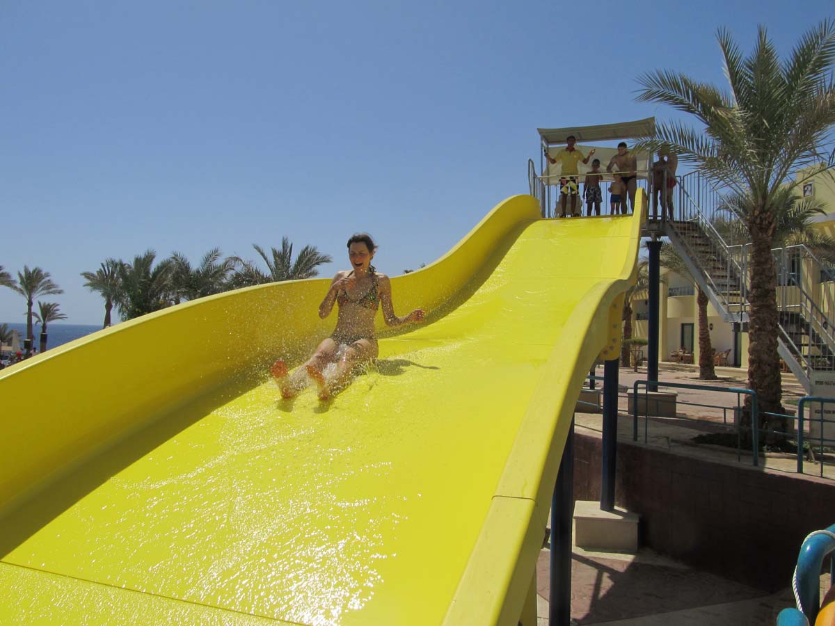 Через кілька днів я запропонував Мишкові піти на глибину, для того, щоб рибок розлякати. «Тато, йдемо!!!» Тепер Мишко спокійно плавав під приводом того, що ми не плаваємо, а лякаємо рибок, причому спочатку тато лізе у воду і лякає їх своєю бородою. Я почував себе якимсь старим Хоттабичем прямо. А потім Мишко спускається з понтона, щоб стріляти в рибок з водного пістолета водою! Рибки ж дуже бояться води. Водна розвага в морі відбувалася до 10:00. О десятій ранку на весь пляж лунало хропіння з колонок, потім крик «Анімасіоне апстееейрсссс!!!!» потім кричав півень ніби ним по барабану били, на повну гучність по черзі грало два гімни готелю, а аніматори спускаючись на пляж заряджали позитивом кожного, хто їм траплявся по дорозі. Для Михайла це означало одне, аквапарк відкритий!