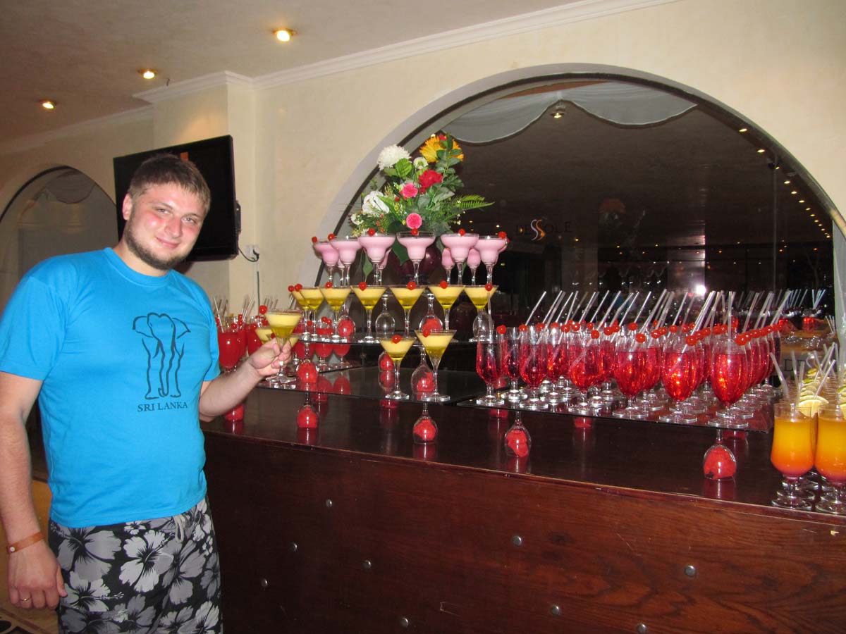 Бармен біля басейну настільки вкладав душу в приготування коктейлів, що навіть ті, хто не п’є, з радістю б у нього замовили коктейль. Після завершення свого шедевра, він набирав пару грам у трубочку і давав продегустувати, раптом ще щось треба додати. Міша вимагав, щоб йому приносили “Атошку фрі” з гриля бару, його високість отримувала картоплю прямо в басейні на виїзді з гірочки.