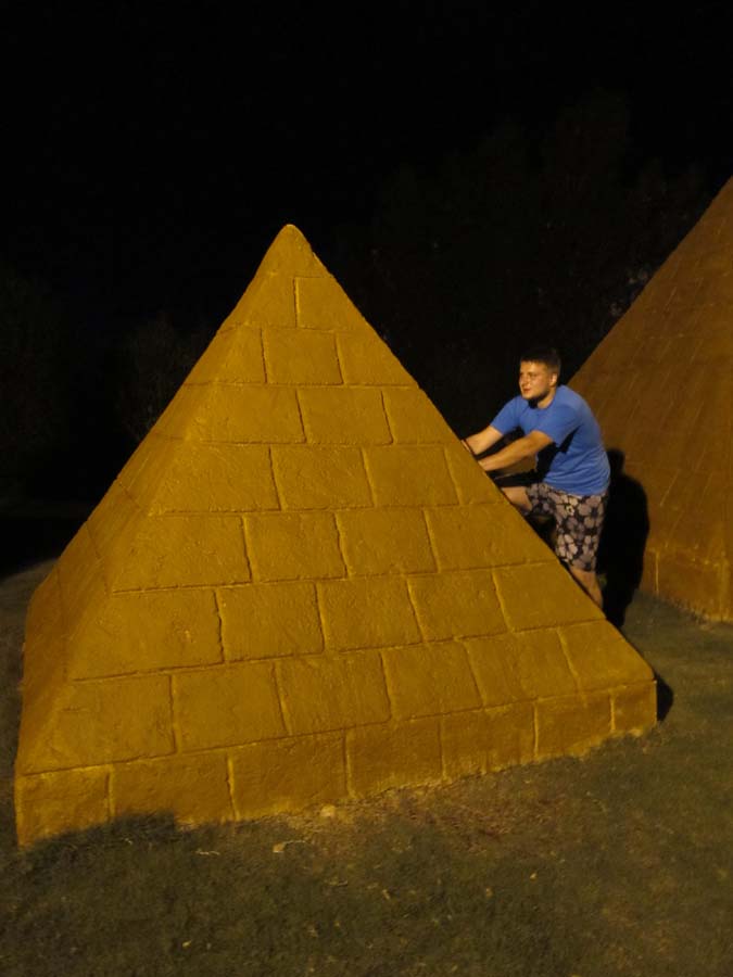 Наступної ночі в мене було заплановано нічне катання на квадрациклах. Вранці з фразою “Дивись як я вмію” я дуже сильно травмував ногу на водній гірці, перші пів години навіть злізти з неї не міг. Наступні години зо три я міг хіба що лежати. Хоч страховка і була, але витрачати дорогоцінні хвилини Єгипту на страховку – це злочин. Біль болем, а екскурсія за розкладом. Оскільки Даша з тещею відморозилися і Мишка мені не дали з собою, довелося самому шкандибати на екскурсію. Працівник готелю якраз проїжджав машиною і запропонував підвезти мене до ресепшену, коли дізнався, що мені треба до шлагбауму готелю дуже схвилювався за мене, а моя відповідь, що мені на екскурсію його зовсім не втішила. Охоронець на виході з території готелю на мене теж дивився квадратними очима. До речі охороні готелю взагалі залік, вони завжди були готові допомогти, питали чи все гаразд, коли ми чекали довго на машину. У обумовлений час мене особисто забрав водій на своїй машині, спочатку я думав, що мене просто повезли на органи. Причому цей водій говорив лише арабською. Потім він забрав ще двох хлопців з іншої Дессолі, таке враження, що суцільні Дессолі в Шармі. Всю дорогу наш драйвер говорив двома телефонами одночасно, при цьому не кладучи трубки і швидко перемикаючись між дзвінками. Наша теорія була, що він таким чином підробляє в техпідтримці місцевого провайдера. Коли ми проїхали табличку Welcome to Egypt у зворотний бік, теорія щодо органів у всіх трьох зміцнилася у думках. Але зрештою нас таки посадили на квадрацикли. Всім окрім мене впарили арафатки по 3 долари. Отже, помчали. Я помітив, що квадрацикл поставлений на підвищену передачу і відчув, що задній рейсер може цього не знати. Коли я обернувся назад, все, що мені залишалося – сильно затиснути гальма. Арабка в мене так упилася, що обернулася вся колона. Далі ми їхали трасою і коли треба було об’їхати машину, проаналізувавши вміння водіння задньої арабки я ще раз обернувся назад. Дівчина ніби джин ширяла в повітрі, а квадрацикл, немов керований невидимим гонщиком, перетнув перпендикулярно трасу і поїхав у пустелю. Політ дівчини був не так довгим, як ефектним. Полежавши секунд 10, вона встала, сіла за інший квадрик і поїхала далі – брутально! Нічна пустеля просто радувала око, це якесь особливе відчуття. В один момент, коли колона їхала на невеликій швидкості, до мене підбігло якась єгиптеня, засунуло палець у квадрацикл і той затих. За дорогу в нашій групі чотири рази ламався квадрацикл, причому четвертий був у мене. Потім за хорошою традицією ми хором кричали ім’я кожного з групи, щоб послухати ехо. Причому один назвав настільки складне ім’я, що я від душі посміявся з жарту, але це виявився не жарт… просто він виявився татарином за національністю. Поки катався, нога пройшла. Нас повернули по готелям. В цей вечір в готелі ми зустріли двох цезарів, які посилено споювали якихось дівчат.