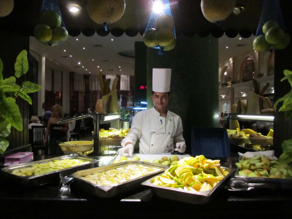 Чесно кажучи, в снек-барах біля басейнів можна було так наїстись, що обід би уже не вліз. О 12:00 аквапарк закривався на перерву, а це означає, що час обіду! Це був не просто обід, це було справжнє бенкетування – велика різноманітність м’ясних страв, салати: грецький, шуба, олів’є, смачне морозиво. Кухар готують при тобі свої шедеври. Дитячі аніматори у вигляді різних веселих персонажів закликали дітей поїсти у спеціальну дитячу зону. Бармени на швидкість наливали безлімітного пива та вина. Мишко швидко зрозумів фішку ол інклюзива і вимагав все нових і нових смаколиків.