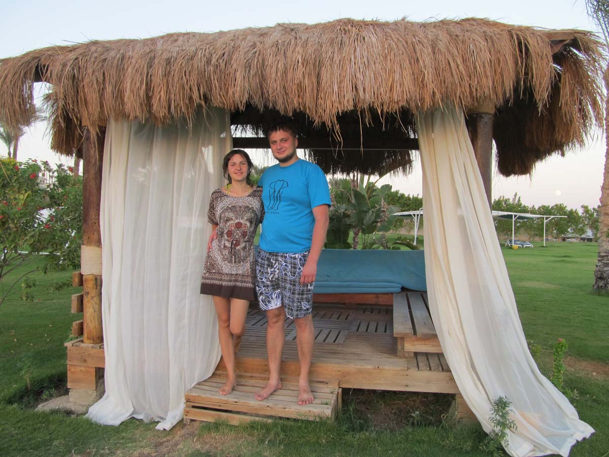 Після приїзду на нас чекав цілодобовий Royal All Inclusive. Менеджер на ресепшені видав нам ключі і сказав, що ми матимемо дуже гарні кімнати. Жодних грошей у паспорті, ніяких сперечань чи здирств, просто ось вам гарні кімнати. Дуже вразило. Конферансьє наполягав, що хвилин через 15 покаже нам дорогу, але в Єгипті треба цінувати кожну хвилину і ми самі вирушили дослідити територію. Але спершу поїсти! І в бар заглянути! О, тепер можна йти далі. Територія середнього розміру, але як же ми блукали в пошуках номера! Втім, наші блукання припинилися, напевно, день на сьомий. Дашина мама з Мишком, які залишилися чекати на працівника сказали, що теж довго шукали номер.