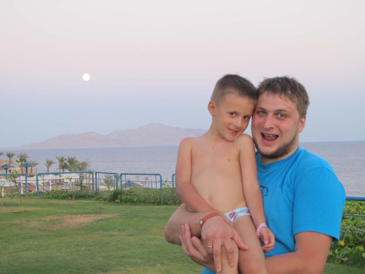 Хочу сказати, що місцеві жителі в Єгипті за останні два роки дуже змінилися на краще. Ніхто до тебе здебільшого не чіпляється, не хочеш торгуватись – не треба. Нам, звичайно, цього сильно не вистачало. Мені ця фішка дуже подобалася, а тепер її нема. Тепер єгиптянам залишилося свою жадібність побороти і все буде супер. А взагалі так було цікаво гуляти місцями дворічної давнини. Тут Мишкові давали безкоштовно картоплю, а ось тут Мишко сам у колясці покотився доки ми фотографувалися. На дев’ятий день у нас був виліт до Києва після вечері, що ідеально компенсувало приліт до Єгипту після вечері.