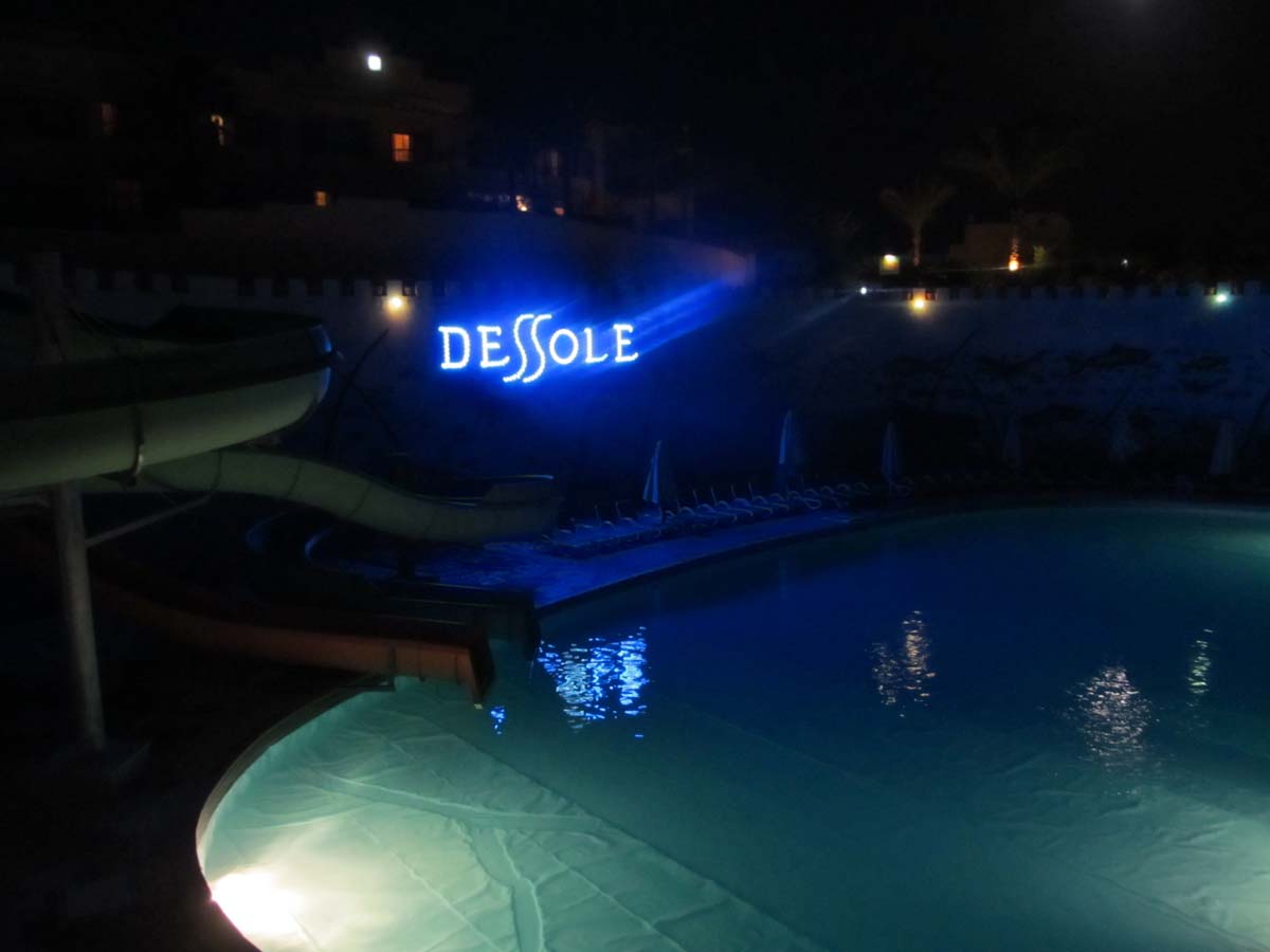 На цей раз вибір готелю був найретельнішим і враховував просто величезну кількість критеріїв, все ускладнювало обов’язкову наявність водних гірок на території. Сайт пошуку готелів вже вдруге нам допоміг зробити правильний вибір, як далекого 2012-го з тайським готелем. І ось ми вчотирьох летимо в нами ще незвіданий готель. У літаку було видно, що всі летять на позитиві. Під час підльоту до Шарму один із туристів радісно вигукнув «А он і наш Dessole!» За ілюмінаторами яскраво світилися великі літери нашого готелю. Було дуже круте відчуття того, що саме наш готель виразно виділявся з висоти. Всі, хто летіли до нашого готелю, немов вступили до братства. Після прильоту був окремий автобус для готелю. Свої валізи треба було чомусь запихати у вікно, а всередині працівник їх приймав. Гарний арабський звичай! Коли одна дівчина сказала, що вона краще занесе речі через головний вхід, я їй розповів, що це буде грубе порушення старої традиції і вважатиметься образою. Зі словами «Добре, не ображатимемо єгиптян» вона так само засунула свою валізу у вікно. Ми всі вирушили в дорогу. І так знайомтеся, наш найкращий єгипетський готель.
