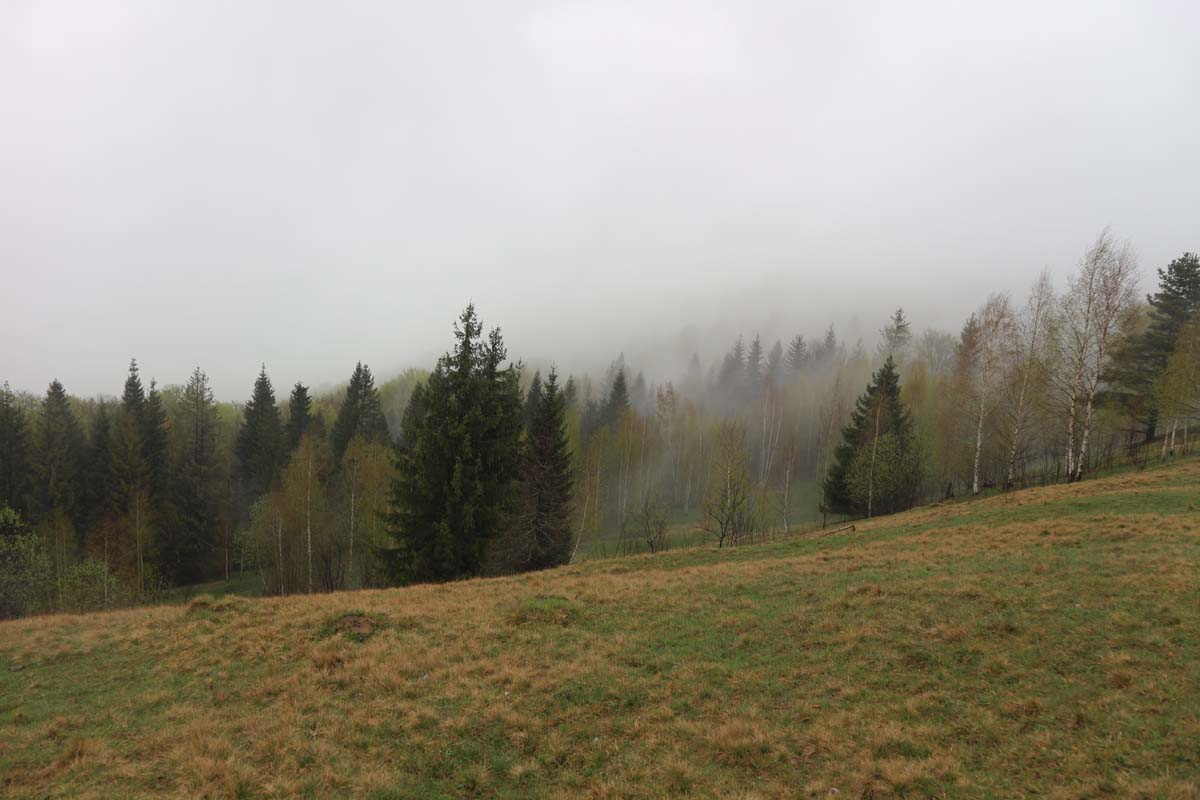 Підйом проходив досить в комфортних умовах, Мишко знаходив шишки і запускав їх у далечінь. Можливо, він хотів зібрати всі шишки в лісі, я навіть не замислювався раніше про те, як багато шишок у світі. Чим ближче ми наближалися до вершини, тим дужче піддував вітерець. На самій вершині нас чекала чудова галявина, але вітер на ній настільки лютував, що наш підйом можна було прирівняти хіба що з сутичкою з тигром!