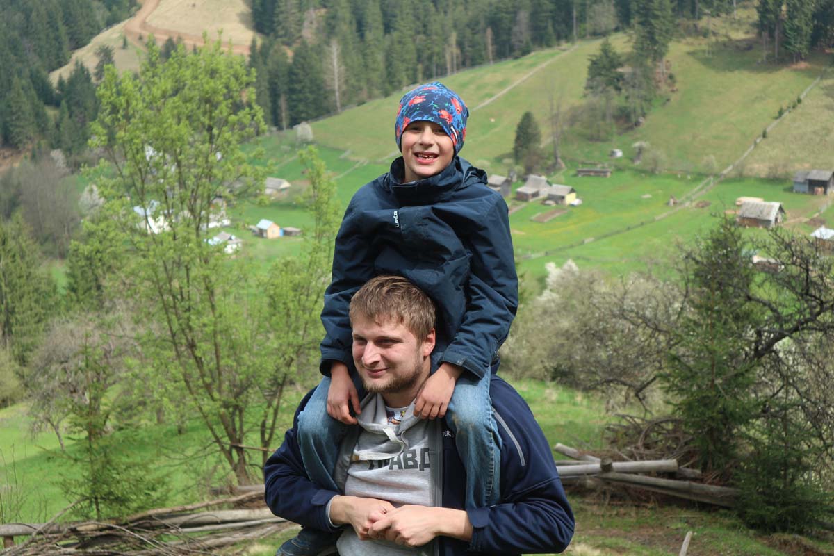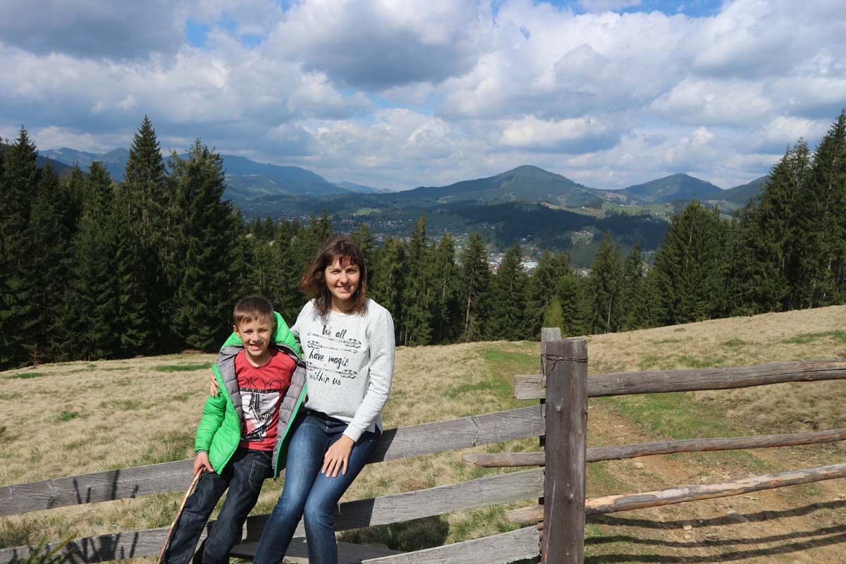 З самого ранку ми підкріпилися пельменями і вирушили до улюбленої Верховини. У Верховині ми завжди зупиняємось в Оксани. Вона нам майже як родичка. Оксана нас знала ще, коли ми з Дашею були просто парою. Колись 7 років тому ми приїхали до Оксани вагітні. Через кілька років Оксана і її мама бавилися з Мишком, коли він сидів на кухні в дитячому стільчику. Ще кілька років потому Оксана приймала нас вже досить з дорослим Михайлом. Причому, пам’ятаю одного разу ми приїхали до Оксани сюрпризом. Прийшли, постукали у двері і сказали щось на кшталт “а ось і ми!”. Вже кілька років поспіль у нас не виходило дістатися Верховини і ось нарешті ми приїхали. Оксана зі своєю мамою нас радісно прийняла. Вона правда не планувала, так рано відкривати сезон прийому туристів, але заради нас без роздумів зробила виняток. Цей знайомий запах її будинку, аромати карпатського власноруч зібраного трав’яного чаю та її фірмовий сорокап’ятиградусний “Корінчик”. Як же радісно знову повернутися до такого рідного дому! Погода так і шепотіла нам – лізьте в гори, сонце з вами! Ми вже традиційно розпочали маршрут із гори, що знаходиться біля музею “Тіні забутих предків”.