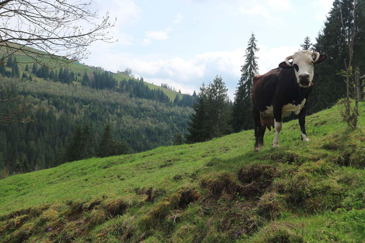 Щоправда, як вони так високо живуть для нас загадка. Загалом було весело, але у нас навіть був екстрим, спочатку Мишко схопився рукою за огорожу, яка була під невеликою напругою. А потім, коли ми перебиралися через пасовище, одній корові з великими рогами не сподобався наш кудлатий дружок і вона рішуче пішла в мій бік. Я Даші з Мишком крикнув, щоб вони терміново бігли за огорожу і сам теж проскочив за найближчий паркан.