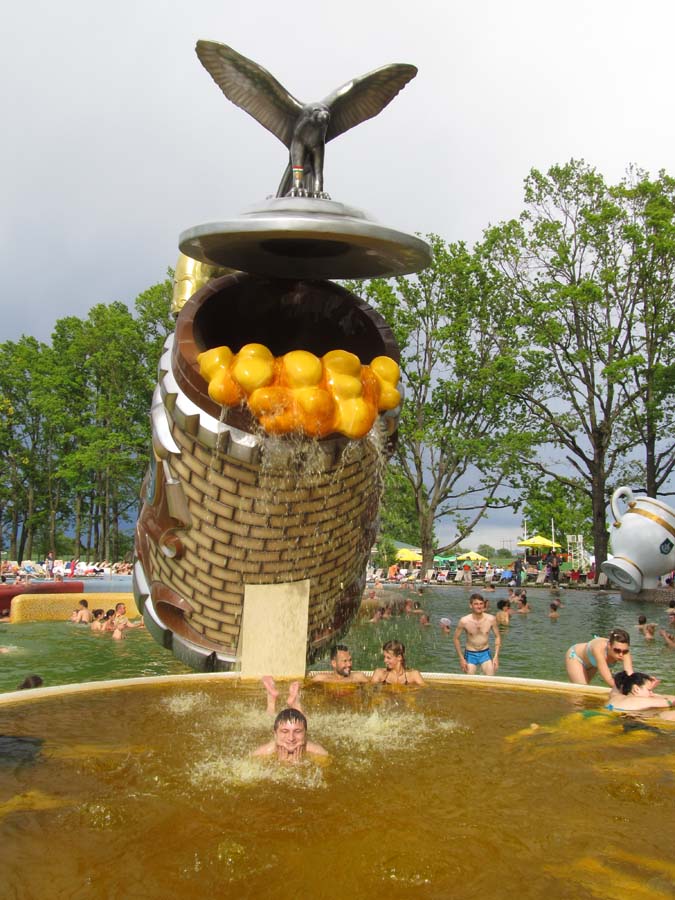 Для спеціальних гурманів був басейн з палинкою (угорський фруктовий бренді), а щоб протверезитися — з кавою. З неба з гігантського крана по центру басейну лилася під великим натиском вода, а навколо була штучна кругова течія, на якій всі влаштовували перегони. У ціну квитка входила тарілка Бограча, бутерброд та вино чи газовані напої.