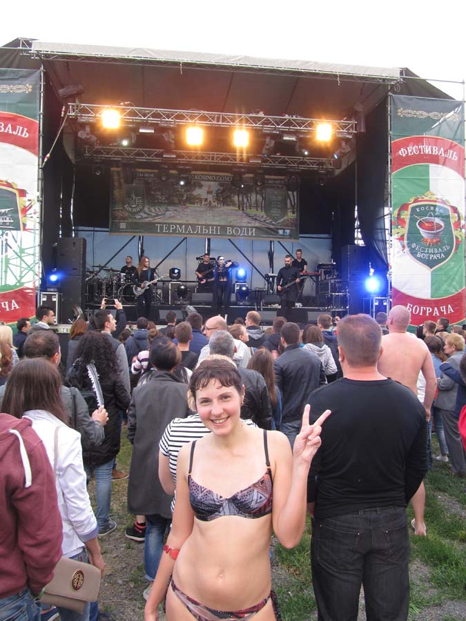 Їхали десь близько трьох години вздовж гірських пейзажів. Але на жаль Берегове було на Закарпатті і гори невдовзі зовсім стали рівнинними та віддаленими. Та й із попутками на Закарпатті складніше вже було. Попросивши водія рейсового автобуса зробити зупинку біля потрібного готелю, ми пішли заселятися. Поки виходили з автобуса я занурився у телефонну розмову, а коли закінчив говорити переді мною розстилалася вся галактика, дрібні зірочки і сузір’я поблискували в різних куточках мерехтливими лампочками. У мене було повне божевілля, куди ми забрели? Хлопець радісно повідомив, що ми прибули до Космопорту. Я не розгубившись уточнив, де саме наша сонячна система розташована, але офіціант сказав, що це не наша галактика. Це виявився бар біля готелю, ми зайшли не в ті двері. Ось так от виходить, раз в житті помилишся дверима і твій будинок за мільярди кілометрів від тебе. В принципі, вже був час обідати. Потрапезували ми як справжні міжгалактичні туристи. Цього разу машину автостопом упіймати не вдалося, тому довелося брати таксиста. Ми прямували в термальний комплекс, що знаходиться в місті Косино, де сьогодні проходить фестиваль Бограча і на додачу виступає гурт The Hardkiss.