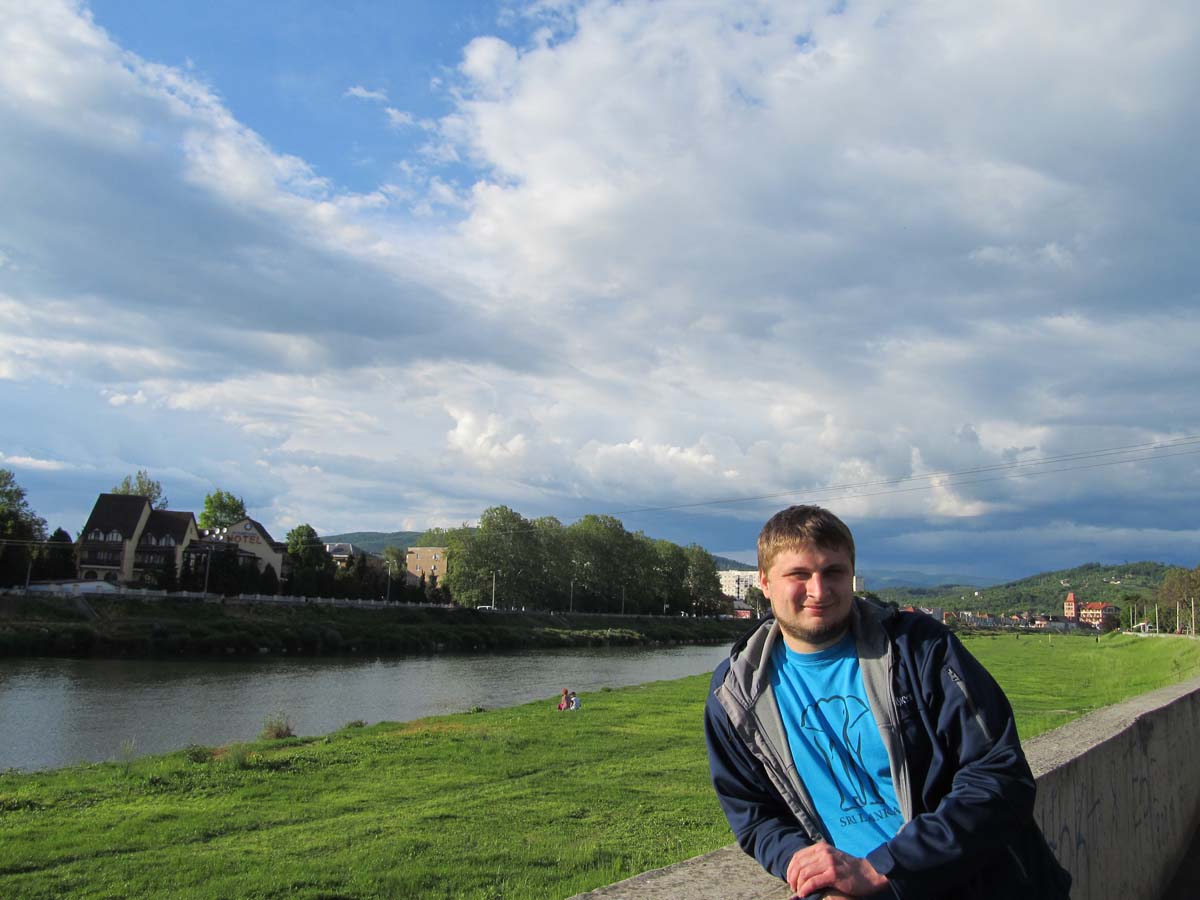 Незабаром ми дісталися замку і поспішили приєднатися до екскурсійної групи. Екскурсовод попався вдалий, чоловік дуже любив історію цього замку. Про сам замок хочу сказати, що досить цікаво по ньому поблукати було. А порівняно з Тустанню, то тут ще й замок фізично існує. Із замку ми поїхали до центру міста. Де був тривалий передих лежачи на лавці. Справа йшла до вечора, GPS показував, що недалеко від нас є величезний парк. Оскільки парки ми дуже любимо, то рішення було очевидним. Тут я й закохався у Мукачево. Краєвид був пречудовим — вздовж зеленого парку до гірського хребта тече широченна річка, оповита соковитою весняною зеленню.
