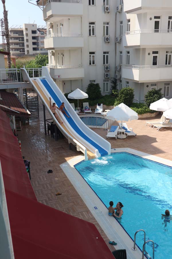 Насамперед випробували басейн, він тут просторий, з двома простими гірочками. Хоча і цих гірок достатньо, щоб все було весело. Мишко тут навіть турецького друга завів. Як він нам пояснив, вони з ним англійською спілкувалися. Про те, що дитина виявляється вже англійською спілкується, хоча в школі вчать досить примітивні слова. І навіть в одному з наступних готелів Мишко мені казав, що хлопчику відповів щодо температури води у басейні. Причому цей хлопчик у мене теж питав про воду в басейні, тобто Мишко таки правильно розуміє турецько-англійську мову.
