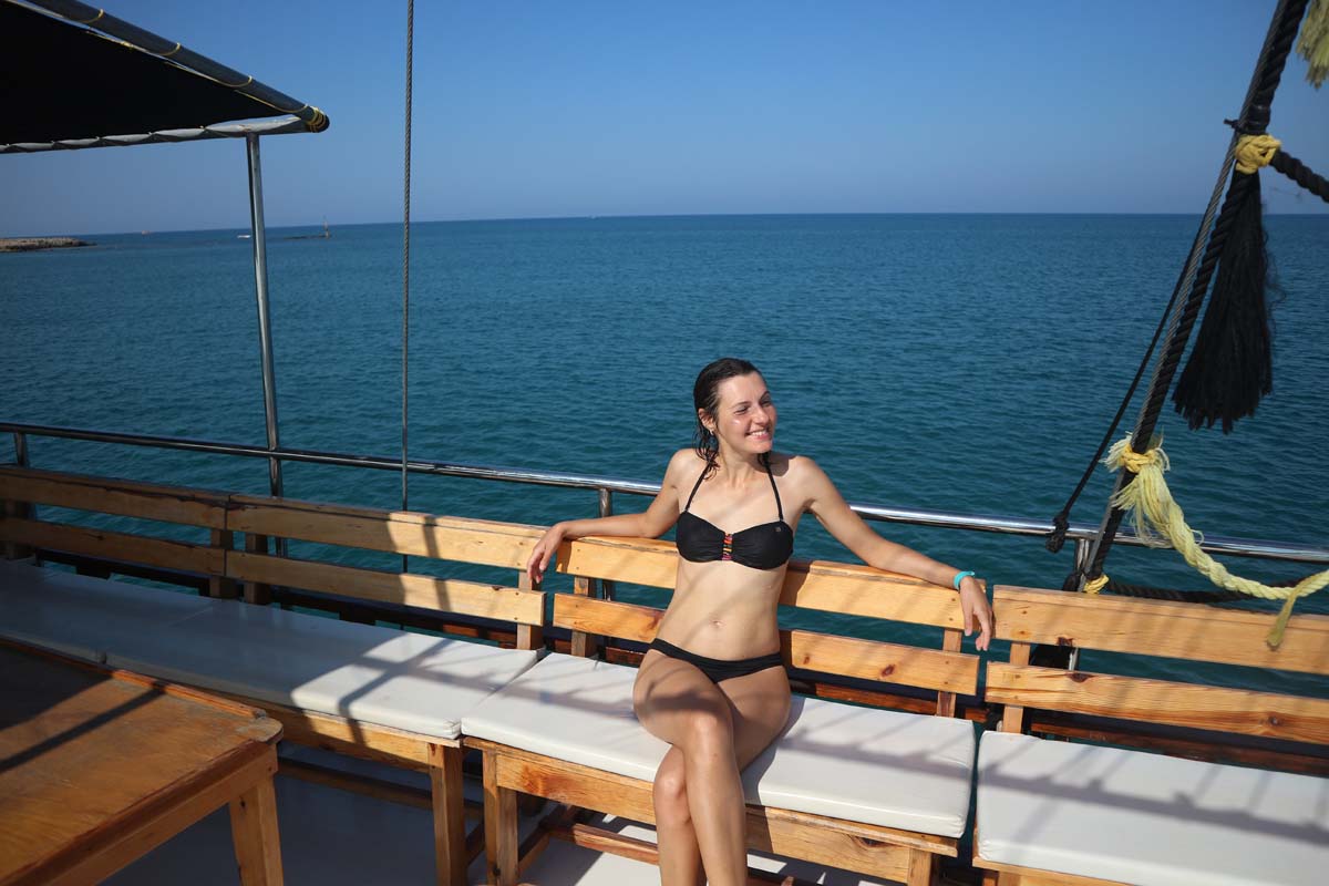 Власний кораблик — це дуже весело, цей круїз повністю наш, зупинка в морі, щоби пострибати у воду, все для нас, Туреччина ми любимо тебе! Та й загалом, будь-який спогад про те, що ми в Туреччині пробудемо ще не один тиждень, одразу ж множив настрій у кілька разів.