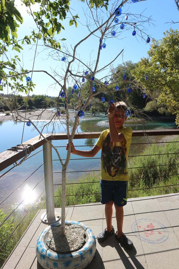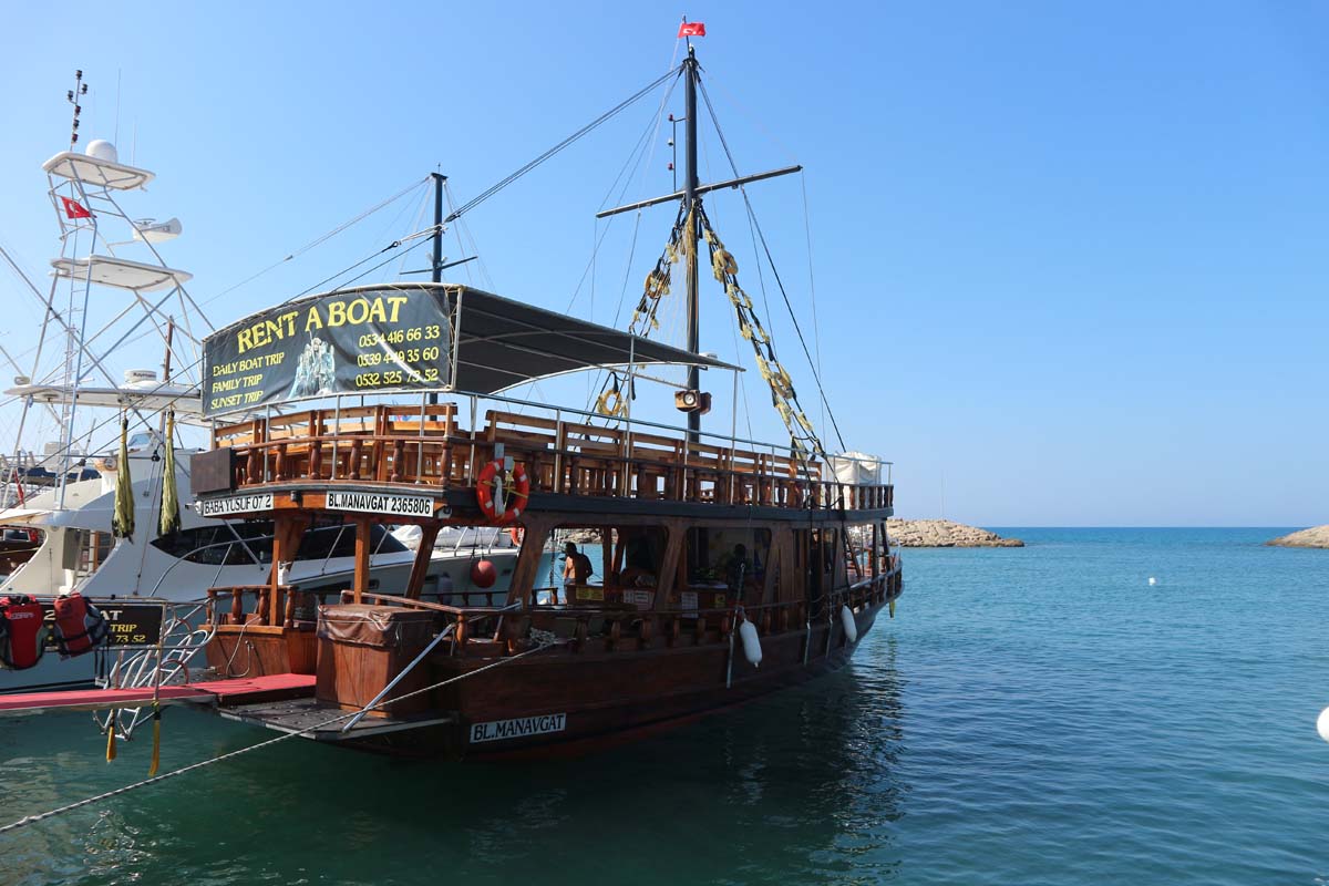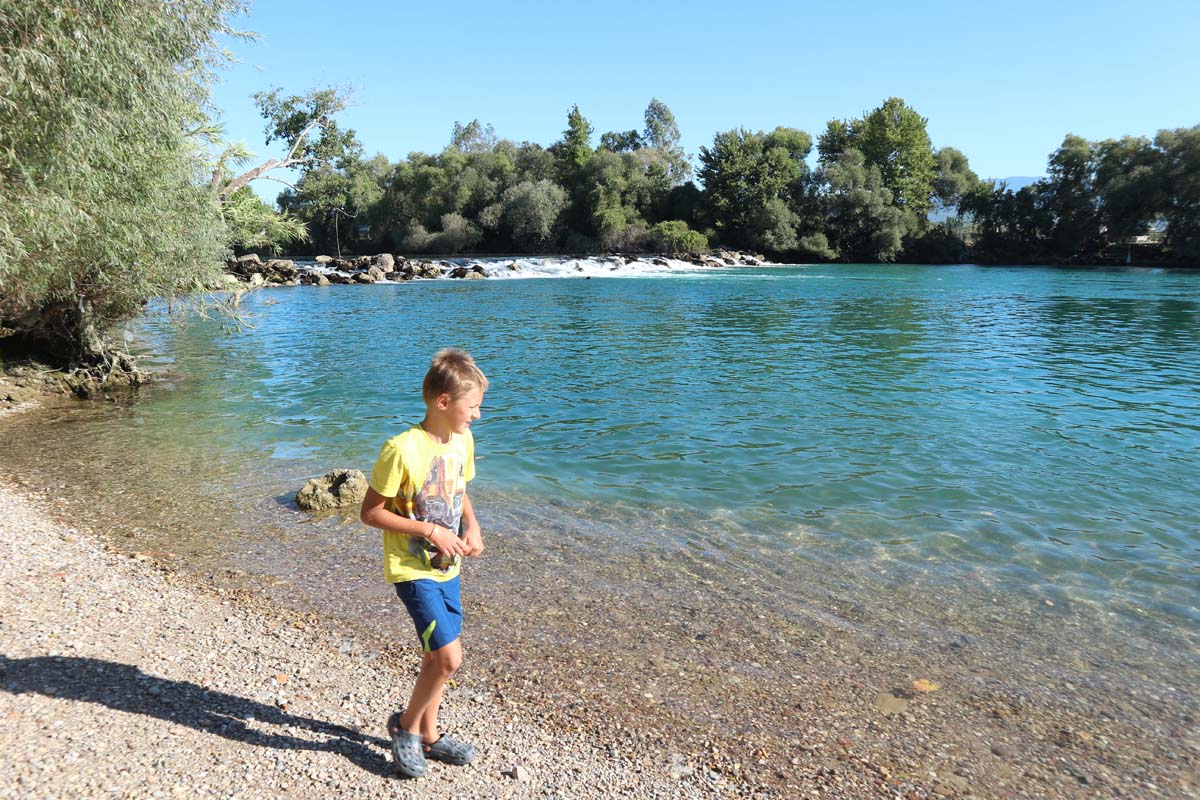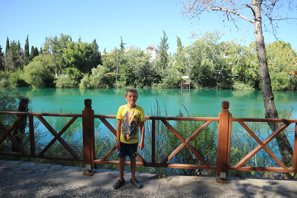 Оскільки часу в нас було ще повно, ми поїхали погуляти по самому Манавгату. Місто, як і всі попередні турецькі міста, не підвело. Ми вийшли біля річки. Тут же посипалися пропозиції від капітанів невеликих кораблів вирушити у міні-круїз. Такого міні-круїзу у нас ще не було. На кораблику ми пропливли приблизно 50 метрів, потім кораблик зупинився і капітан сказав, що піде снідати з іншими капітанами і тільки потім продовжить. Ми з ним попрощалися. Не будемо його відривати від сніданку, бо ще поперхнеться якщо буде поспішати. Пішли гуляти вздовж річки з вражаючи красивим кольором води.