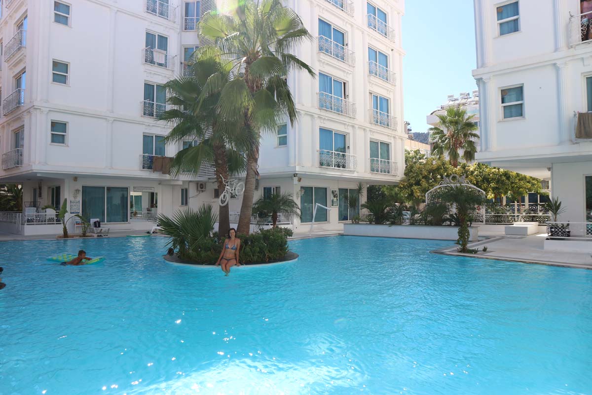 У нас були двокімнатні апартаменти з шикарним басейном, посередині басейну острівець з пальмами.