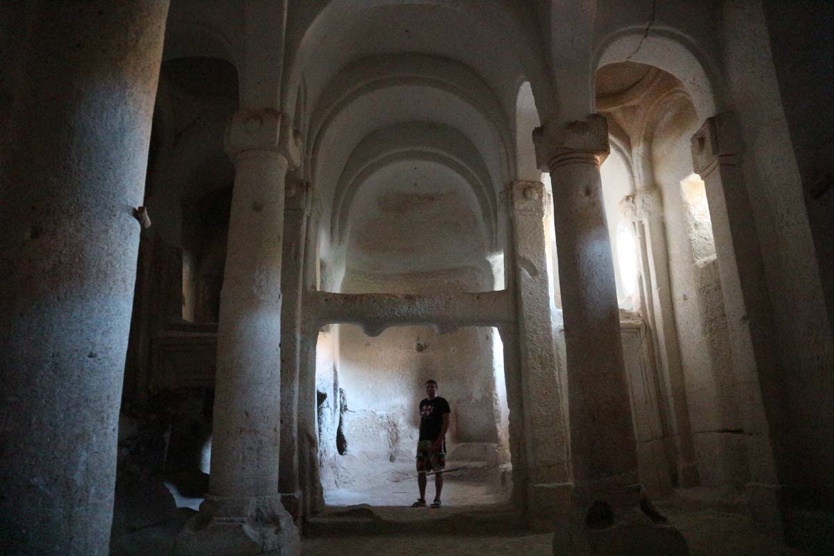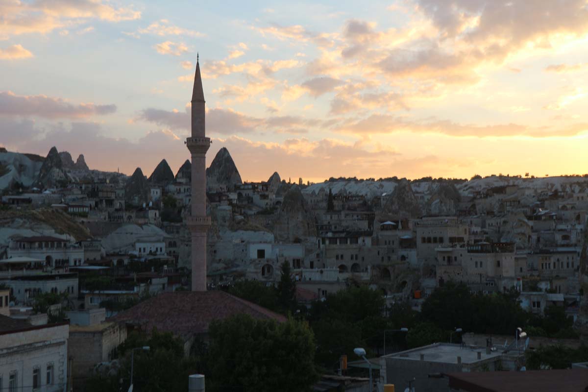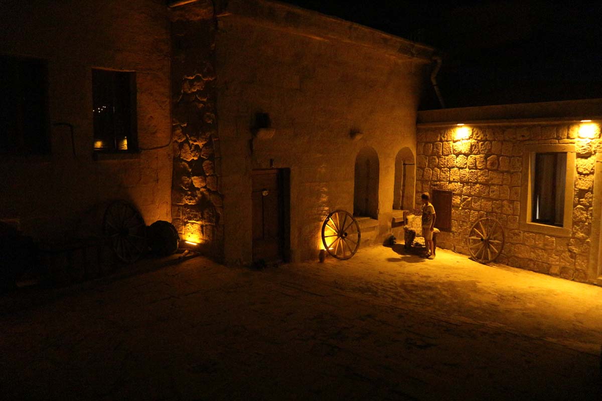 Ми прибули на заході сонця з аеропорту Кайсері. Скільки ми летіли літаком і їхали в таксі, за вікнами абсолютно звичайні краєвиди, без найменшого натяку на красу, яка прихована поблизу Гьореме. На цей раз наш печерний готель виявився не зовсім печерою, але майстерно зроблений під печеру.