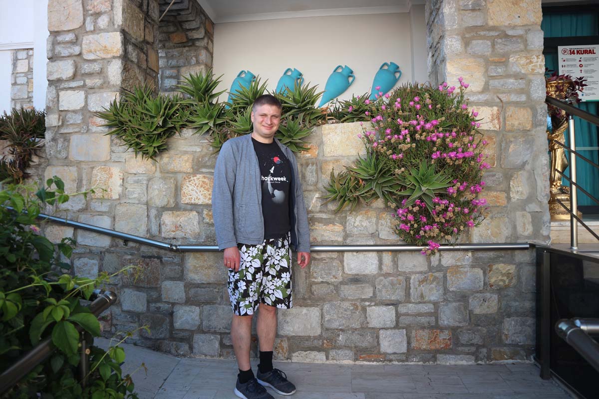 Крім Ніни Михайлівни на території готелю перестав з’являтися один із наших улюблених персонажів. Це був чоловік з невизначеним ім’ям, оскільки представлявся він одним, але, зважаючи на все, він був моїм тезкою. Ми на нього звернули увагу ще у літаку. Він був то пасажиром, то стюардом, який розносив напої разом зі стюардесою. Він брав участь у всіх активностях готелю 24 години на добу. Він примудрявся бути одразу скрізь. І навіть коли я серед ночі пішов на ресепшен, бо треба було щось уточнити, він чистою англійською пропонував вирішити будь-яке питання. Тобто, тепер він ще й співробітник готелю. Для нас залишалося головною загадкою його джерело енергії, при тому це було явно не сп’яніння, оскільки воно не могло триматися 24 на 7. Я думаю, що наш маршрут Туреччиною він легко пройшов би без маршруток і таксі. А головне, це ще треба вміти відпочивати так!