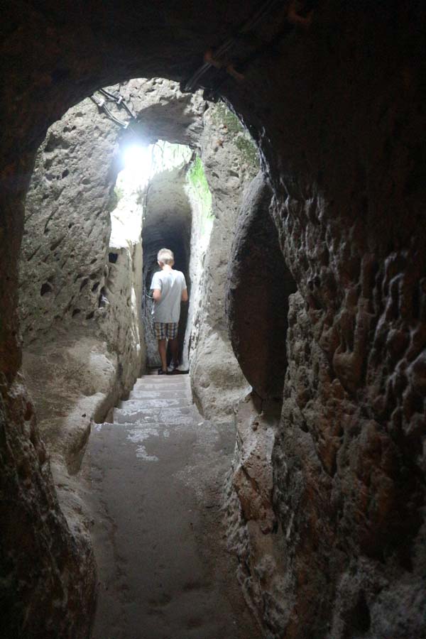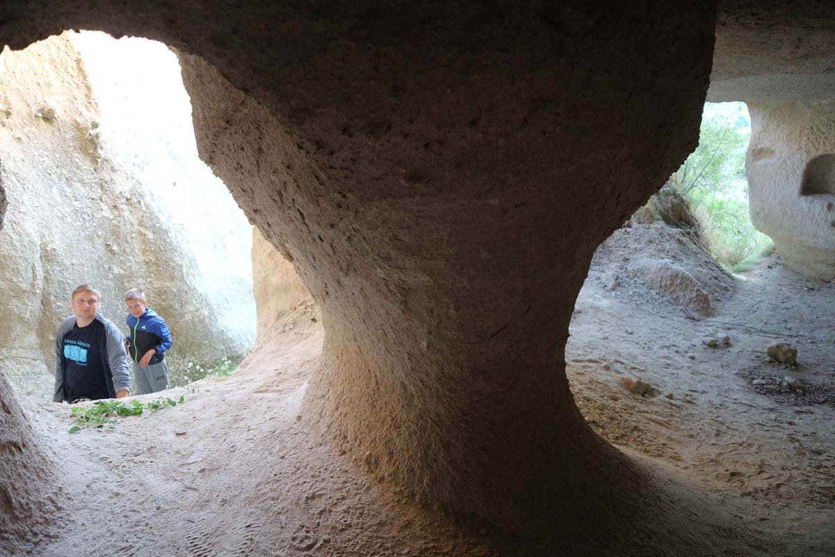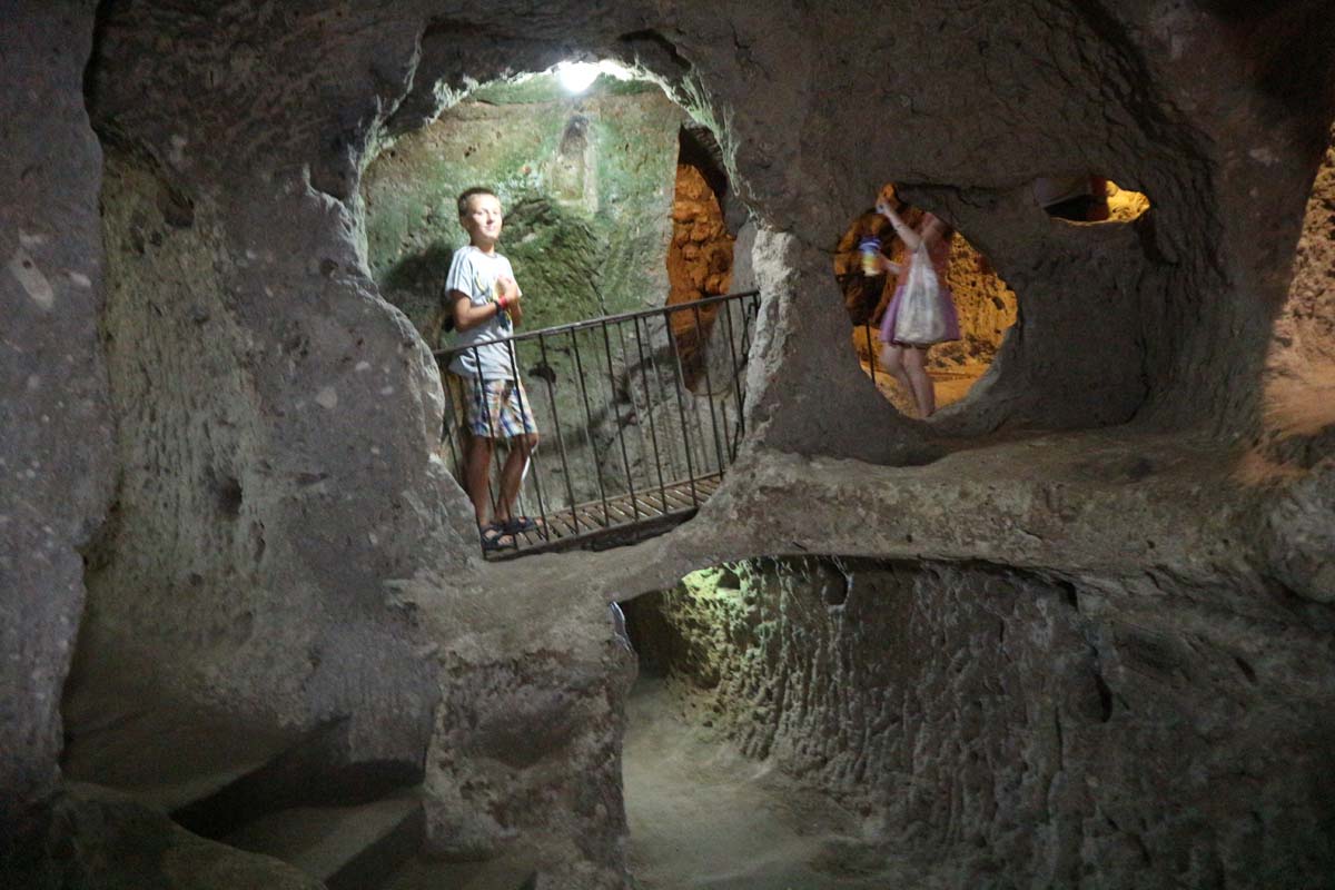 У другій половині дня ми приєдналися до кумів, вони були з машиною. Тепер ми побачимо, що приховує далека Каппадокія. Сьогодні ми приїхали у велике підземне місто. На всіх плакатах була на вигляд неможливо велика схема підземних печер. Я до останнього був упевнений, що це маркетинговий прийом, мовляв, так вони задумували, коли будували. Але за фактом місто виявилося неймовірно глибоким та багатоповерховим. Досвід шикарний, у таких містах ми ще не були. Ходити-бродити тут можна доти, доки ноги не відваляться. Одна проблема, давні мешканці будували місто задовго до появи ліфтів. І сили треба розраховувати так щоб потім легко піднятися назад. Хоча, напевно, якщо зранку до ночі не лазити долинами, то містом буде не так і складно підніматися-спускатися)