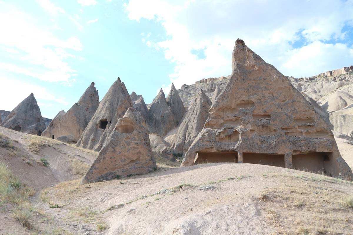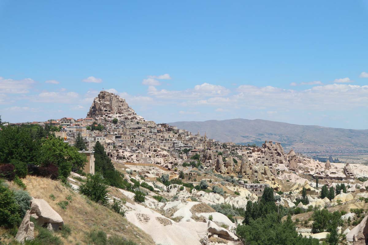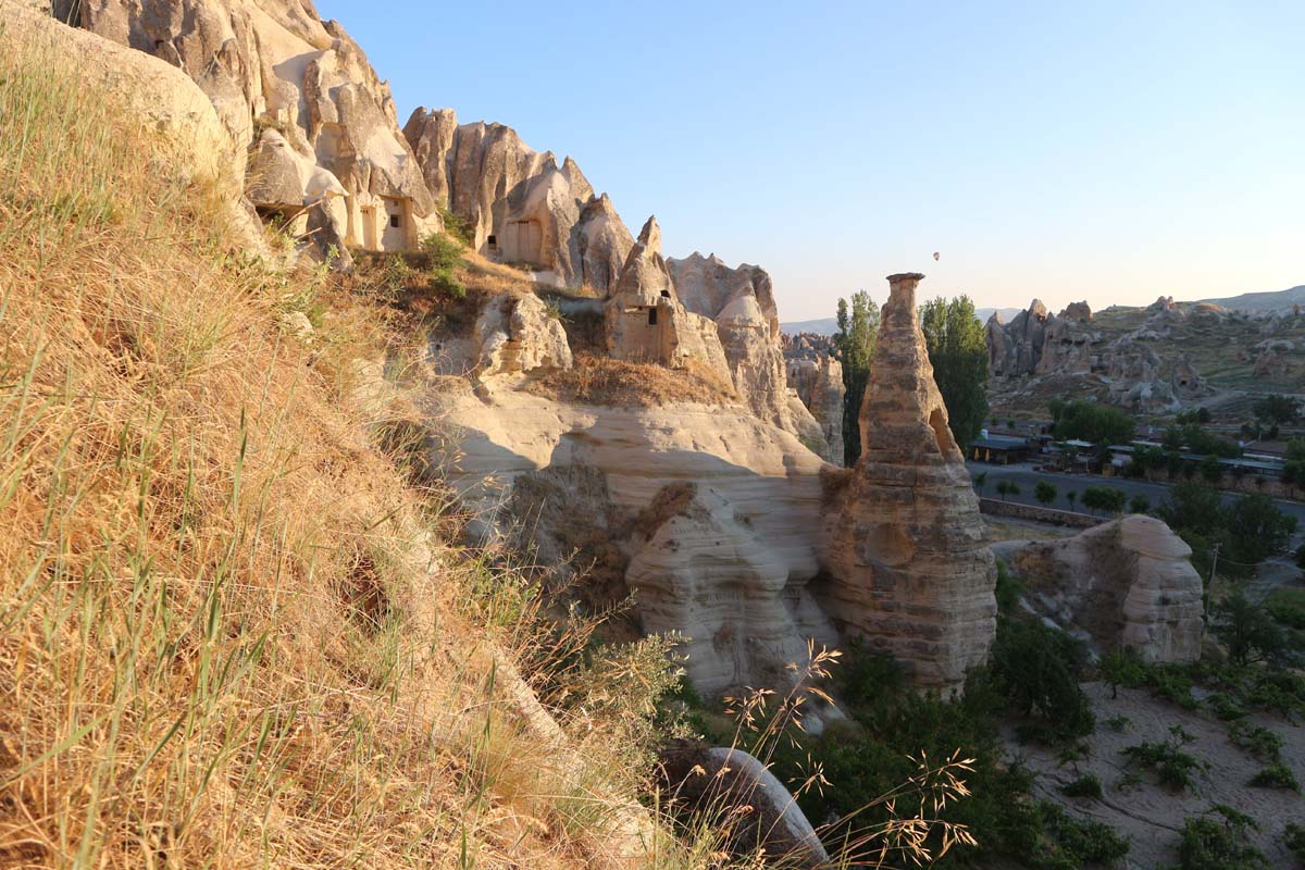 Ранок ми почали традиційно зі споглядання куль. Кількість куль цього сезону варіювалася близько сотні. Так що обороти нарощують, а ціни все такі ж приємні. Вартість кулі в липні 2021 року – 55$. Кулі, до речі, на третьому відвідуванні Каппадокії вже не так тішать око, як раніше, але щоранку спостереження за кулями все одно неодмінна частина Каппадокії. Око може не так тішить вже, але як це красиво, незвично і атмосферно. Тепер потрібно розпочати відкривати нові місця. Почнемо, мабуть, з он тієї гори, в якій купа печер.