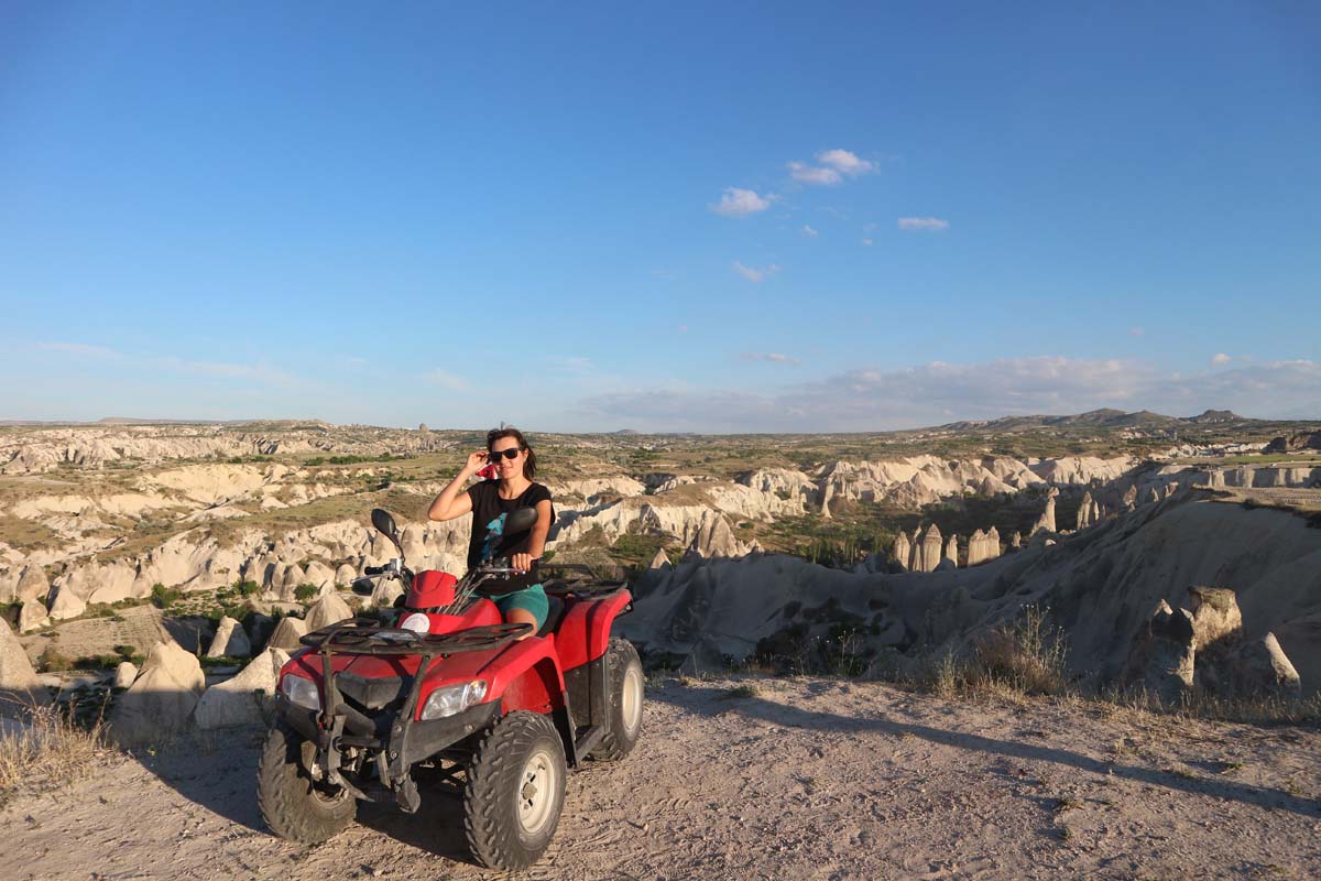 У вечірню програму у нас був записаний обов’язковий пункт подорожі – покататися долинами Каппадокії на квадроциклах, цього разу з кумами, вони сьогодні так само прилетіли повним складом до Каппадокії. Не встигли Саша, Катя та Настя (їхня донька) відпочити з дороги, як з машини пересіли за кермо квадроциклів. Катання по долинах Каппадокії на квадроциклі це бути водієм ровера на іншій планеті. Причому квиток коштує символічні 110 лір ($13,2) за дві години за квадроцикл.