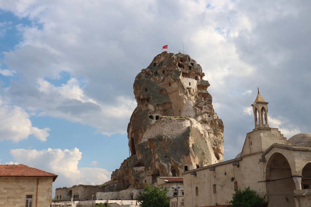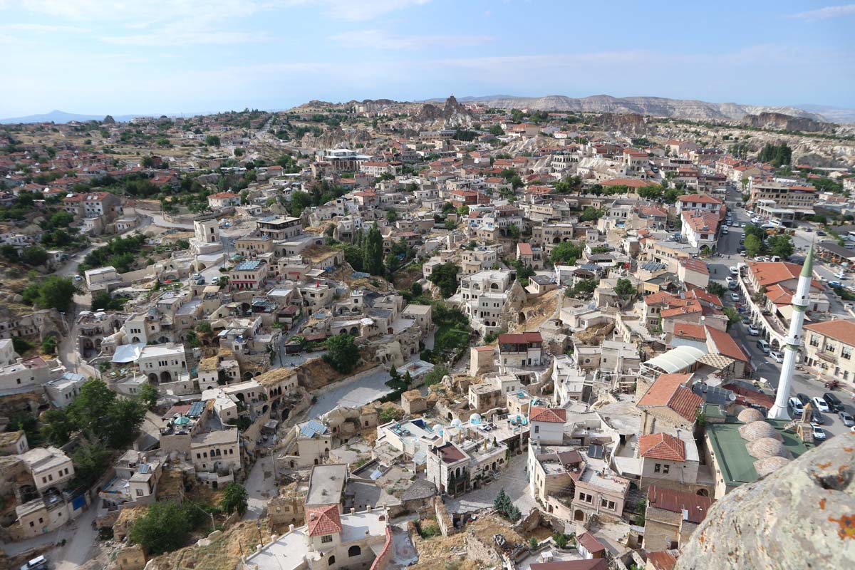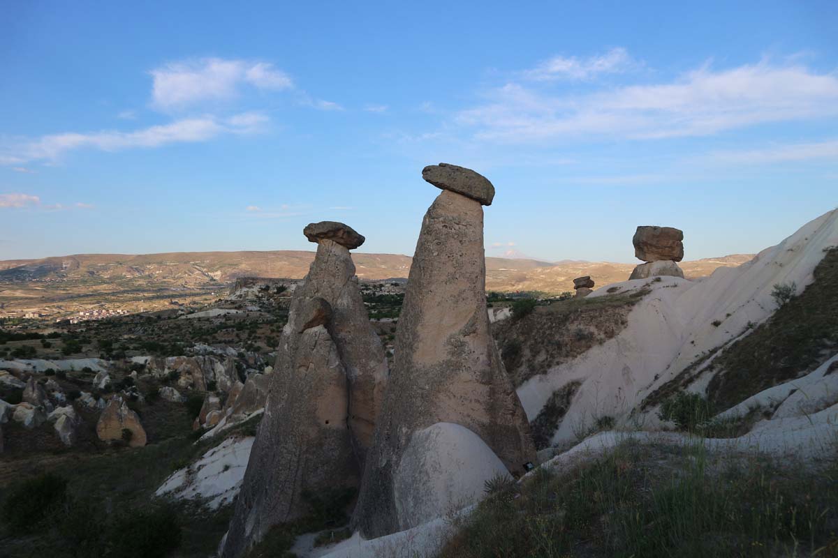 На зворотному шляху ми захопили ще одне нове для нас містечко — Ургюп. Його мені порадила моя колега Маша. І мала рацію, я досі не розумію, чому ми в минулих поїздках не відкрили це чудове містечко на околицях Гьореме. Місто дуже затишне для прогулянок і навіть є своя фортеця, щоб полазити. Як ми з’ясували тут майже в кожному місті є своя фортеця, відвідати все не вийде — не вистачить сил. Я в нове місто закохався буквально з першого кроку. Тепер його обов’язково рекомендуватиму включати у свій маршрут по Каппадокії. Сьогодні у нас тут було не дуже багато часу, тому ми ще днями сюди повернемося для більш детального вивчення всіх вуличок. А поки що рухаємось у напрямку до Гьореме. Наступним невеликим відкриттям у нас були три знамениті стовпчики — скелі “Three Beauties”.
