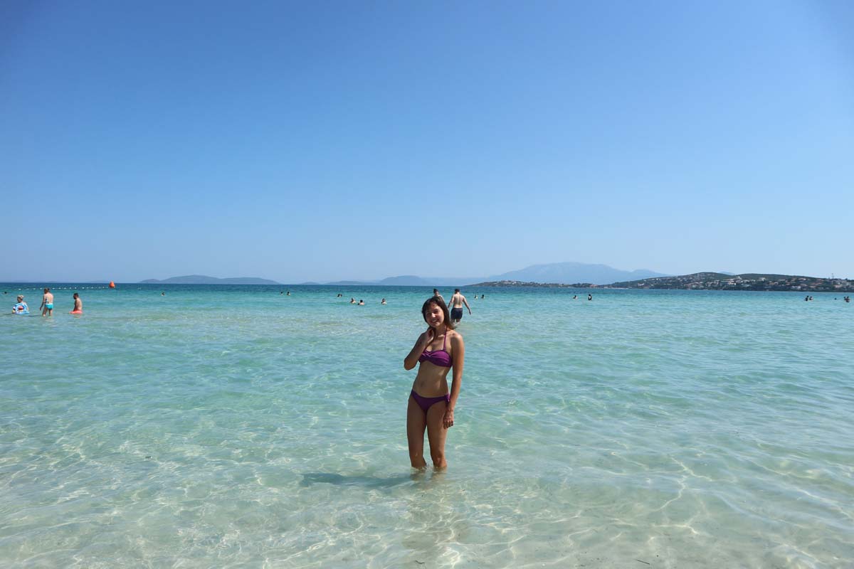 З ранку ми вирішили відвідати інші знамениті пляжі в окрузі Чешме. Тут прям їх багато на різній віддаленості. У цей день ми й зрозуміли, що пляжі без термальних джерел навіть наприкінці червня зберігається арктичний холод. Дисонанс був ще той, у повітрі стояла нестерпна спека до якої ніяк не виходило звикнути. Ноги ломило пронизливим болем від крижаного та дрібного моря.