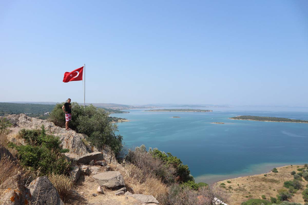 Чим більше ми віддалялися від Чешме, тим менш привабливими ставали курорти та море. Море тут хоч і залишалося безмежним, але воно вже було надто дрібним і за кольором зовсім не привабливим, в основному це були гавані з напівживими човнами. Ілдир знаходився взагалі ніби на краю Туреччини та всього світу. Тут можна було сміливо сказати: “Вітаю, ви дісталися до кінця курортної Туреччини!”. Але у нас попереду ще достатньо часу для подорожі, то що робитимемо з маршрутом? У планах ще був Ізмір, але турецький менталітет конкретного цього регіону нам не особливо подобався, тому вирішили велике місто в дику спеку виключити з маршруту. Час подумати у будь-якому випадку ще є, поки що наше завдання накупити морозива та почати підйом на фортецю. Нас правда в турист інформейшен працівник попередив, щоб ми були обережнішими на фортеці, а то його брата вкусила змія. Ця історія явно додала перчинки нашому підйому. Нагорі виявилося справді красиво, як і обіцяли, з висоти місцеве море навіть має непоганий вигляд. Далі за маршрутом у нас була розвага для справжніх екстремалів у таку спеку – термальні басейни.