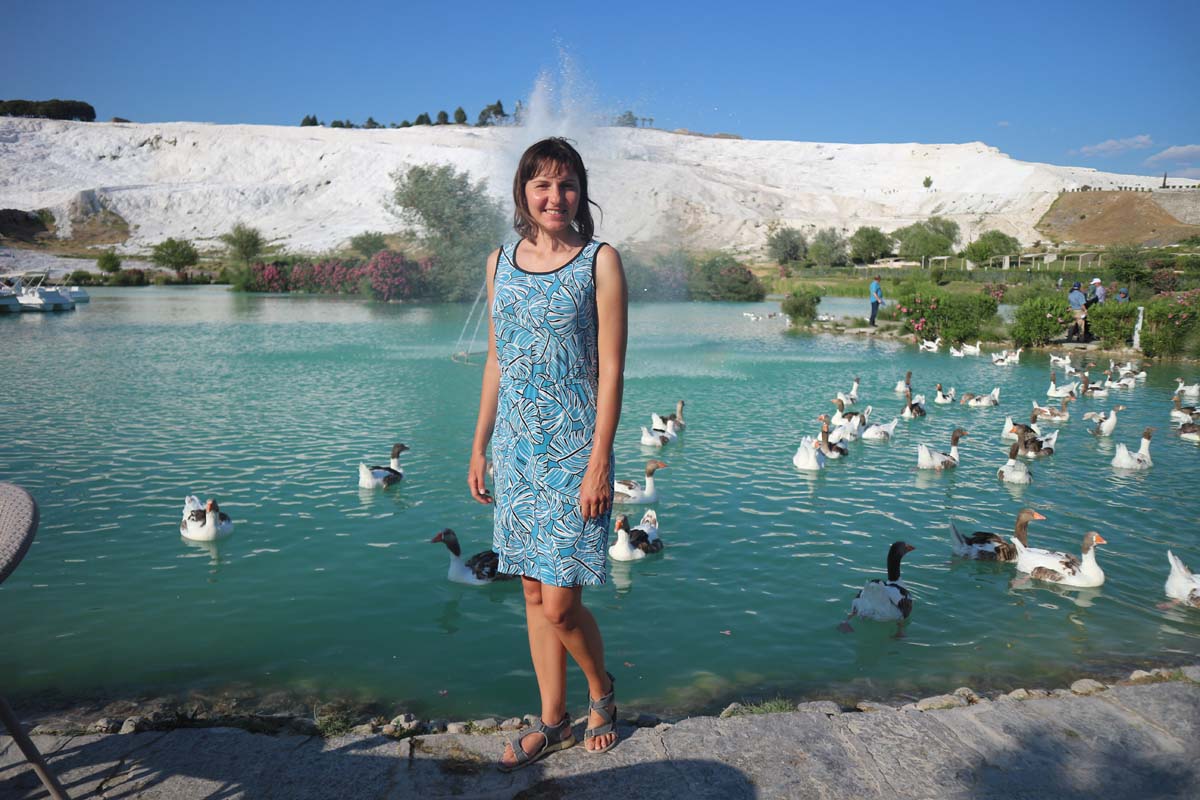 У нас тут буде зупинка на кілька ночей, тепер потрібно оперативно розв’язувати нагальні питання, щоб встигнути. Але відповіді вже бігли до нас. Перший зустрічний сказав, що у нього найдешевші польоти на кулі, всього по 47 доларів, другий перехожий нас привітав і запитав, чи це ми з готелю Белламартімо! Вам туди! І вказав рукою у бік нашого готелю. Схоже, що дикуном приїжджають до Памуккале настільки рідко, що про наше заселення до місцевого готелю вже знають усі мешканці міста. Потім інший чоловік нас намагався переманити у свій готель, причому топив нас ціною настільки, що я так і не зрозумів хто кому повинен буде платити за проживання))) У нашому готелі нас теж зустріли з радістю. Варто було мені підключитися до інтернету як прилетіло повідомлення від німецьких колег з роботи “HELP”.