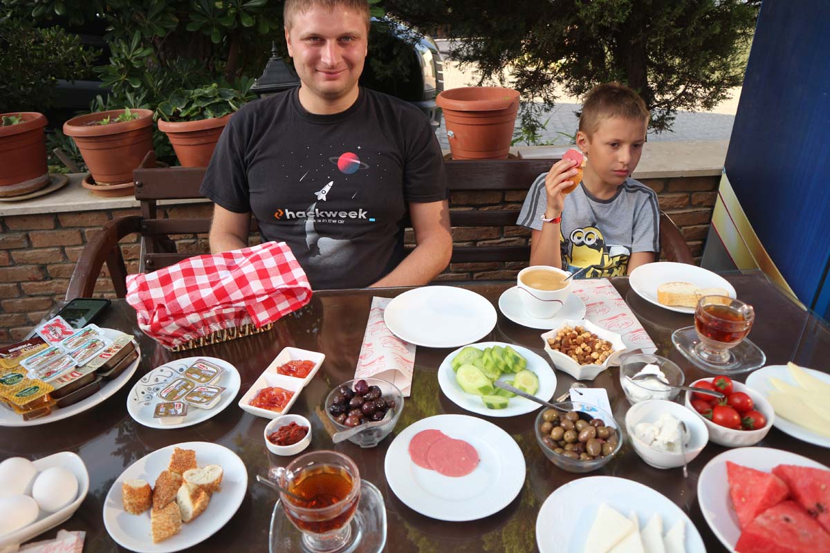 Але тепер уже не зрозумієш, він пожартував, щоб заспокоїти або дійсно пожартував) Загалом політали ми на славу! Якщо ви вже літали раніше в Каппадокії, тут теж має сенс повторити. Потім капітан нас готував до жорсткої посадки, але в останній момент передумав і сказав, щоби всі розслабилися. Посадка була така м’яка що ми хвилин п’ять висіли просто над землею не опускаючись. Політали? Тепер можна на сніданок. Сніданки у цьому готелі були гарні! Або я просто втомився від сніданків формату ол інклюзиву. Як не дивно, але від інклюзиву теж можна втомитися.