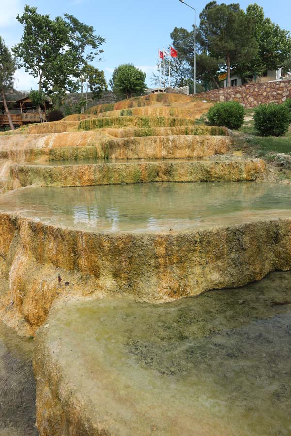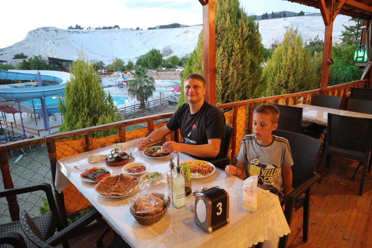 Червоні травертини є повною протилежністю до прекрасного. Памуккале дуже пощастило, що їм дісталися білі. Хоча якщо ти вже тут подорожуєш, то зазирнути до чергового невеликого турецького містечка однозначно варто. Як мінімум порадіти тому, які в Туреччині бувають приємно низькі ціни. У цьому місті ми виконали одну з цілей поїздки – спробувати кокореці. Це страва зі шлунків. Особливої насолоди від страви ми не отримали, але досвід був однозначно цікавим. Другим кулінарним відкриттям був шовковичний сік.