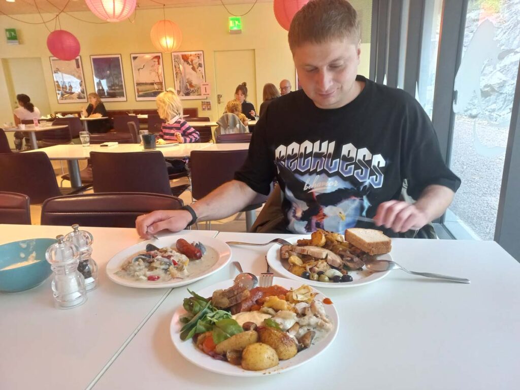 Цікавий факт, коли пливли на острів, хотілось якомога швидше доплисти, тепер же все навпаки, хочеться якомога довше плисти, щоб перепочили трошки ноги, бо хоч острів невеликий, але не рівний. У готелі нас вже чекала дуже привітна менеджер. Заселились! Тепер можна поїхати в центр. До кінця дії квитків була ще хвилина, цього нам вистачило, щоб застрибнути у трамвай та проїхати дві із п’яти необхідних зупинок. Звісно ще раз заплатити дві космічні ціни за проїзд не хотілось, краще ці гроші на ЗСУ перевести, тож ми пішли пішки. Саме місто теж непогане, та найголовніше – гастрономічне! Але це й не дивно, не дарма ж стіл називається саме шведським! Тут ми відкрили для себе гастрономічний рай у Picadeli Nordstan. Там як у нашій Салатейрі можна заміксувати собі салат, рахується вага за доволі демократичну ціну. Вечеря на двох обійшлася у 17 євро.